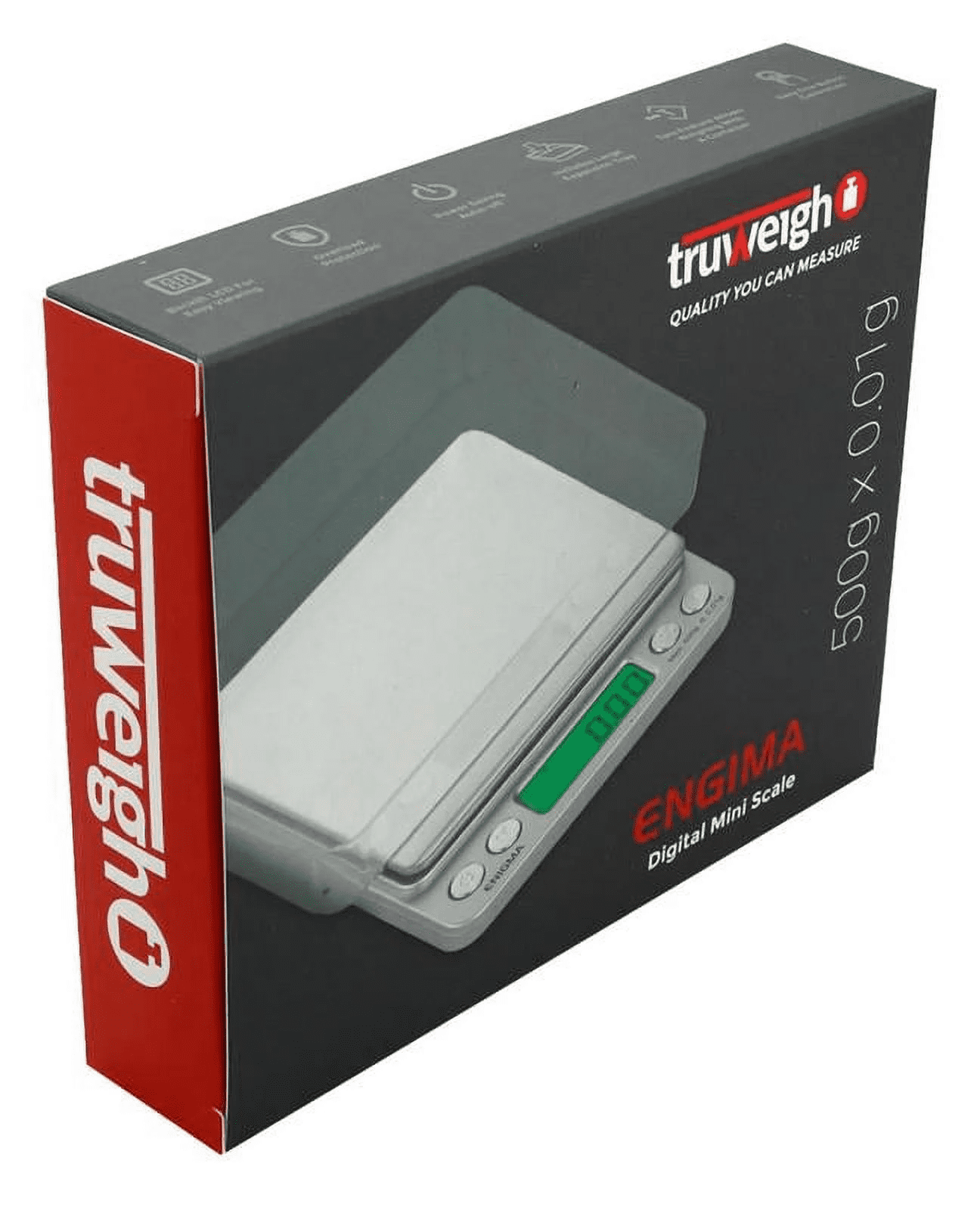 Truweigh is a leader in the kitchen food scale industry, with a wide range in scales for every market, we have a pocket scale to fit every need. The ENIGMA 500g x 0.01g scale is known for high precision and accuracy making this a top of the line barista scale. All Truweigh digital kitchen scales come with a 10 year limited protecting your purchase.,The ENIGMA digital scale is incredibly versatile with a very elegant design. The extra-large 4″ square platform, high precision sensor, and included expansion trays make the ENIGMA one of the most versatile espresso scale around. For safe storage and transportation, the large expansion tray fits over the smart scale while the smaller tray keeps the small kitchen scale platform covered and protected.,Our Truweigh ENIGMA 500g portable scale comes with many features, built-in overload protection to help prevent long term damage to your powder scale. Our digital gram scale also comes with a green back-lit LCD screen for easy reading, as well as an auto shut feature to prevent your portable food scale from draining its batteries. The automatic piece counting makes the ENIGMA stand out from all other scales on the market!,The Truweigh ENIGMA baking scale has a max capacity of 500g and a readability of 0.01g making this a high accuracy scale. It also comes with our in-depth instruction manual to make sure you utilize all features that come with our Truweigh ENIGMA herb scale. With two weighing platforms, the stainless steel scale surface or the plastic case, use either option that fits your weighing needs. Truweigh also included two AAA batteries, making our jewelry scale ready to use as soon as you receive it.,The Truweigh ENIGMA digital weight scale crosses over as a versatile counter top scale. It can be used as a scale for packages, reloading equipment, soap making supplies, scale for food, travel scale, resin scale for DIY projects, meat scale, gold scale, and so much more. With impeccable accuracy trust in Truweigh to help make sure your next meal or at home DIY project is finished with precision and accurate weights. It converts automatically between: G / OZ / OZT / DWT / CT / GN.