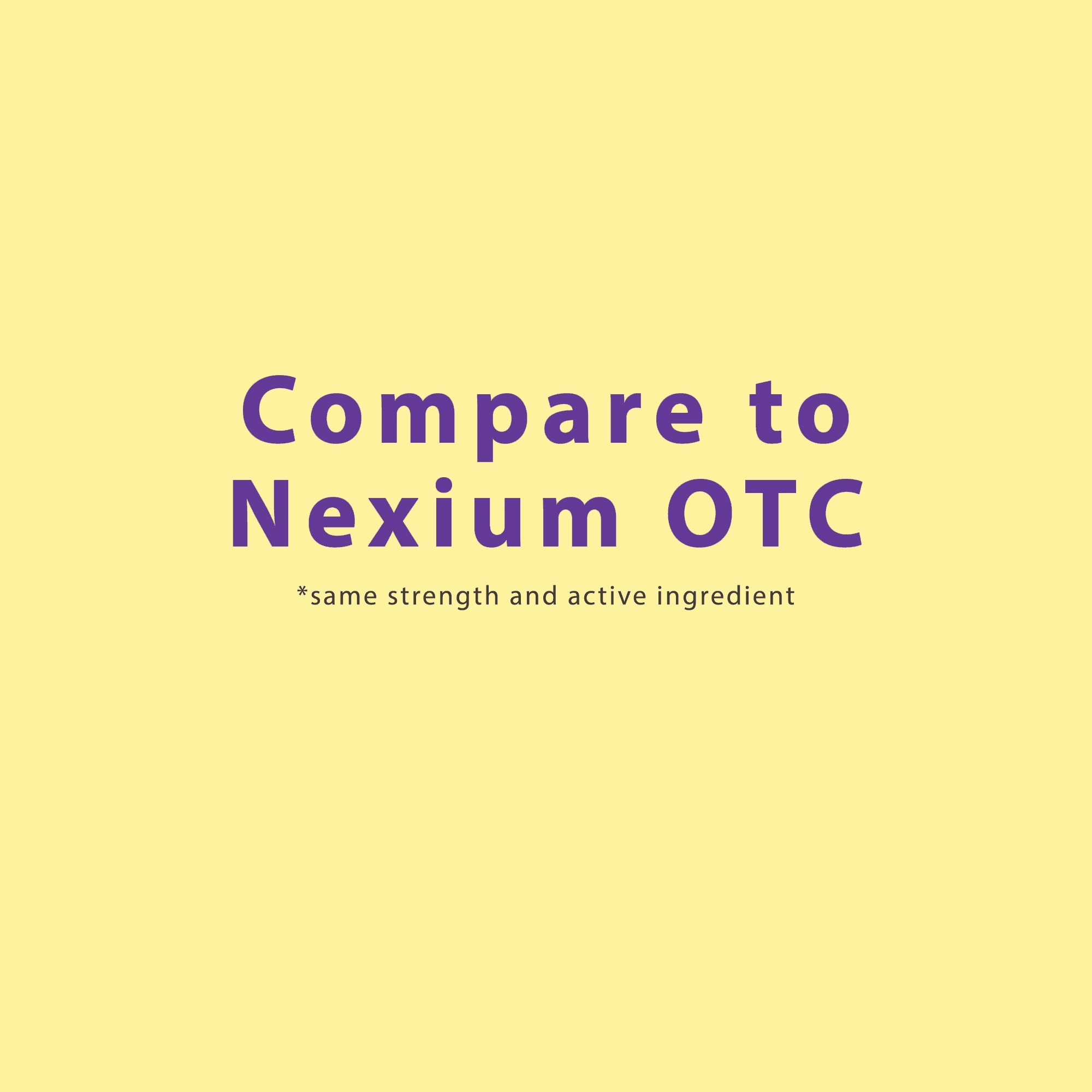 - Compare to Nexium: Active ingredient esomeprazole 20mg is the same medicine at the same strength as in the leading name brand Nexium.