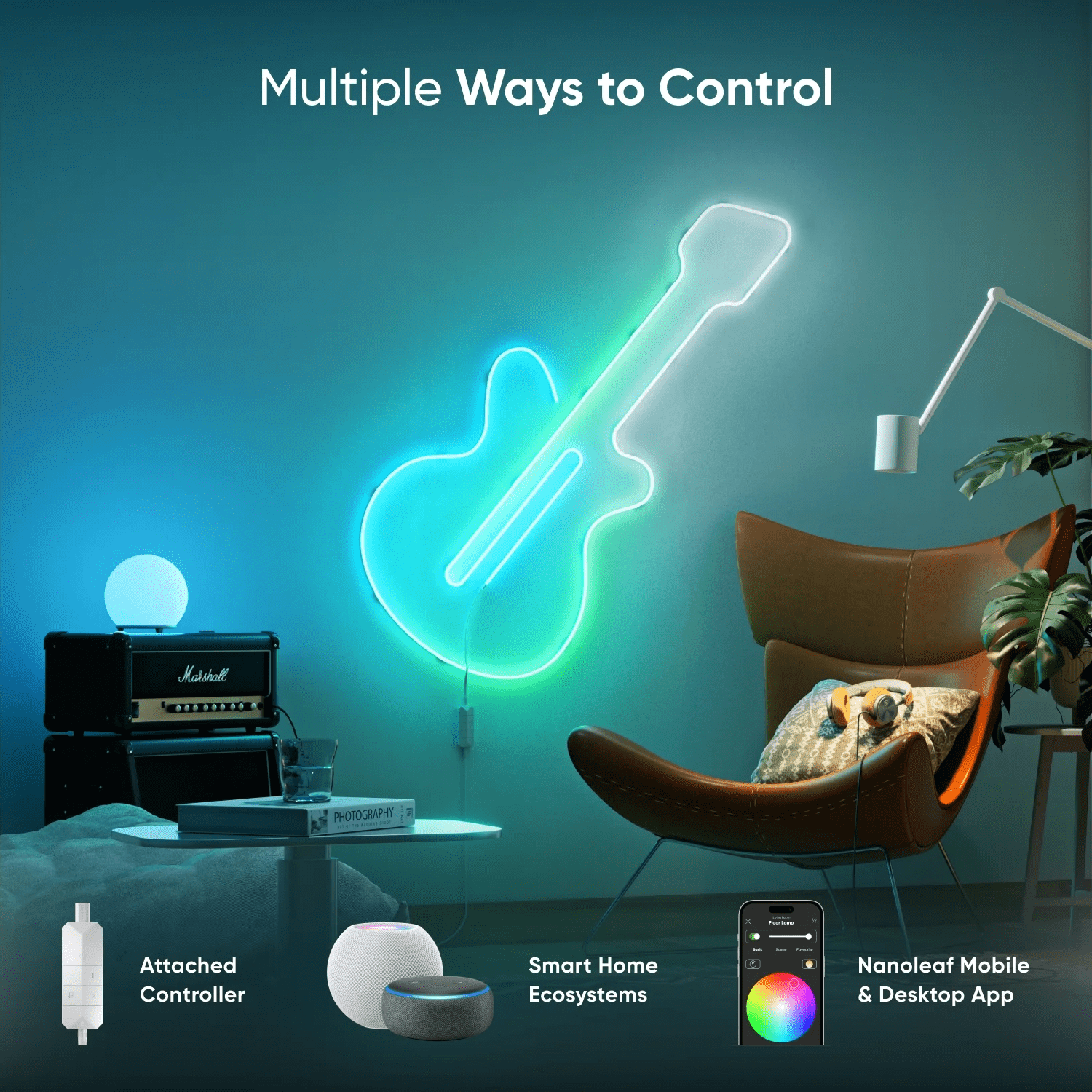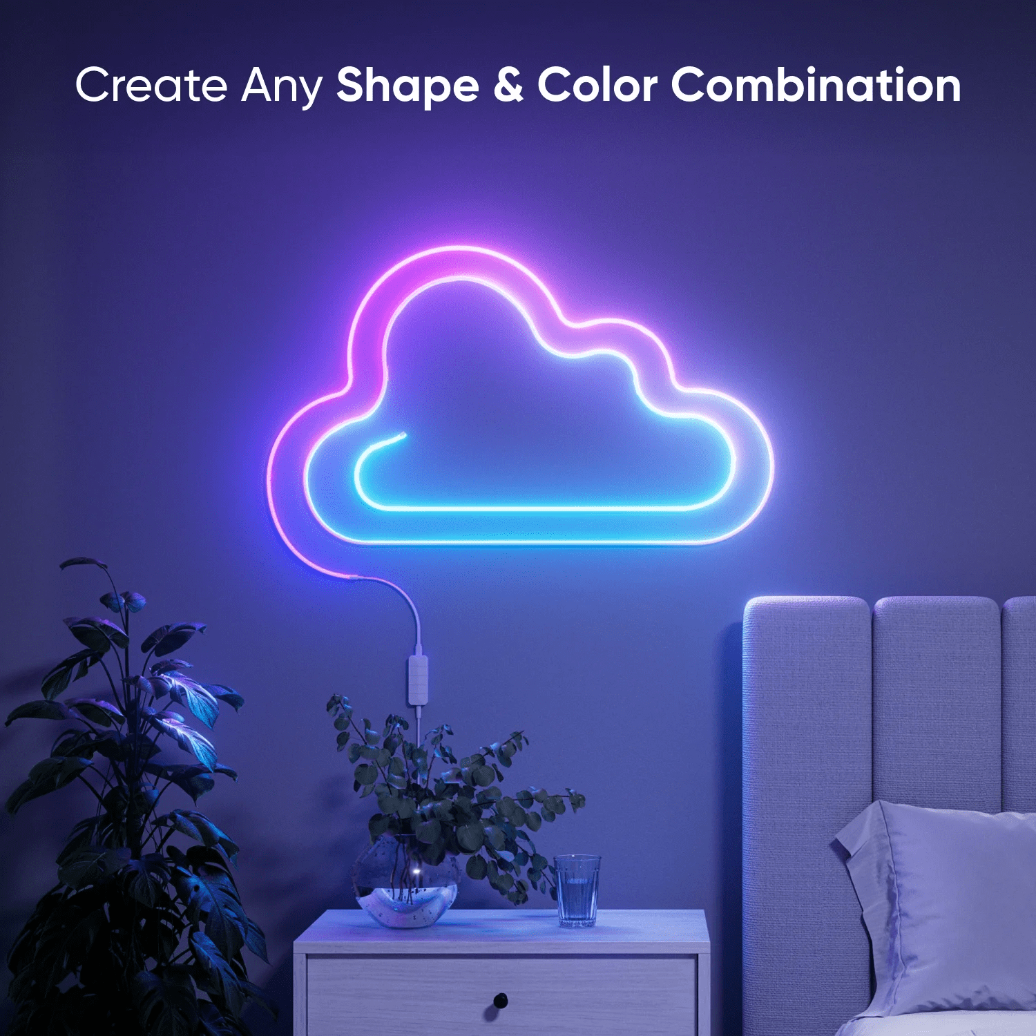 Let your imagination take shape with Nanoleaf’s ultra-flexible LED Rope Light. This multicolor smart lightstrip features animated lighting effects and vibrant gradients that flow across a 5m (16.4ft) strip—perfect for creative designs, custom décor, or mood lighting. Light bulb type: integrated LED. Recommended for indoor use. Power type: plug-in. Ideal for bedrooms, gaming rooms, and kids’ spaces to bring color and personality to any wall or ceiling.