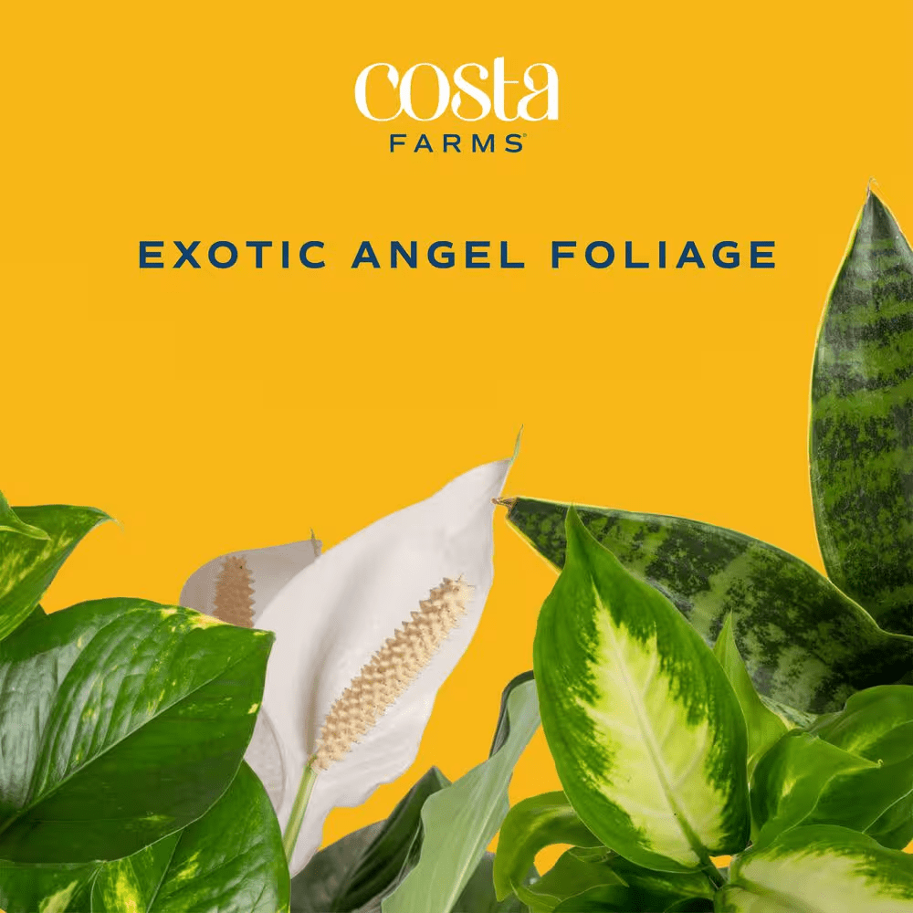 Costa Farms Exotic Angel Clean Air collection includes three plants from a grower’s choice assortment of small foliage plants. See image description of possible varieties that may be included; plants are selected by our expert growers based on seasonal availability. The Exotic Angel Clean Air collection offers you hundreds of unique plants, From small tabletop plants to larger hanging baskets, they’ll add color and life to your favorite room. With more than 300 varieties in the collection, it’s easy to find the perfect plant for your space.