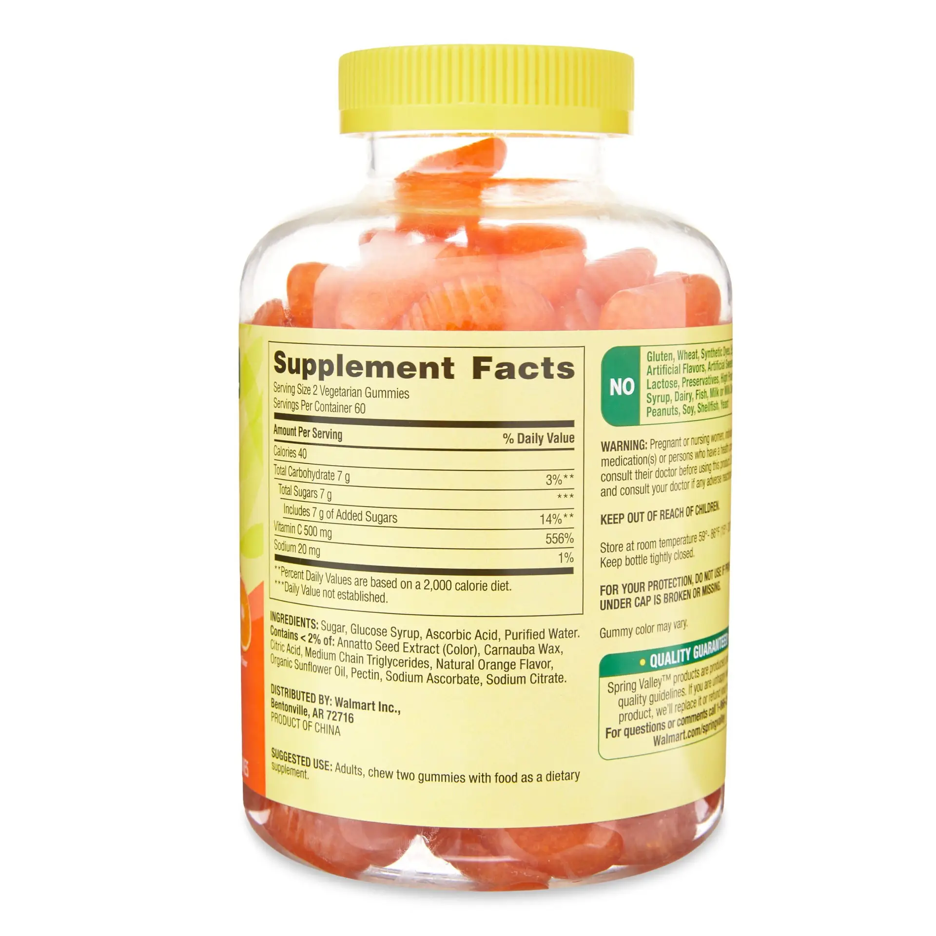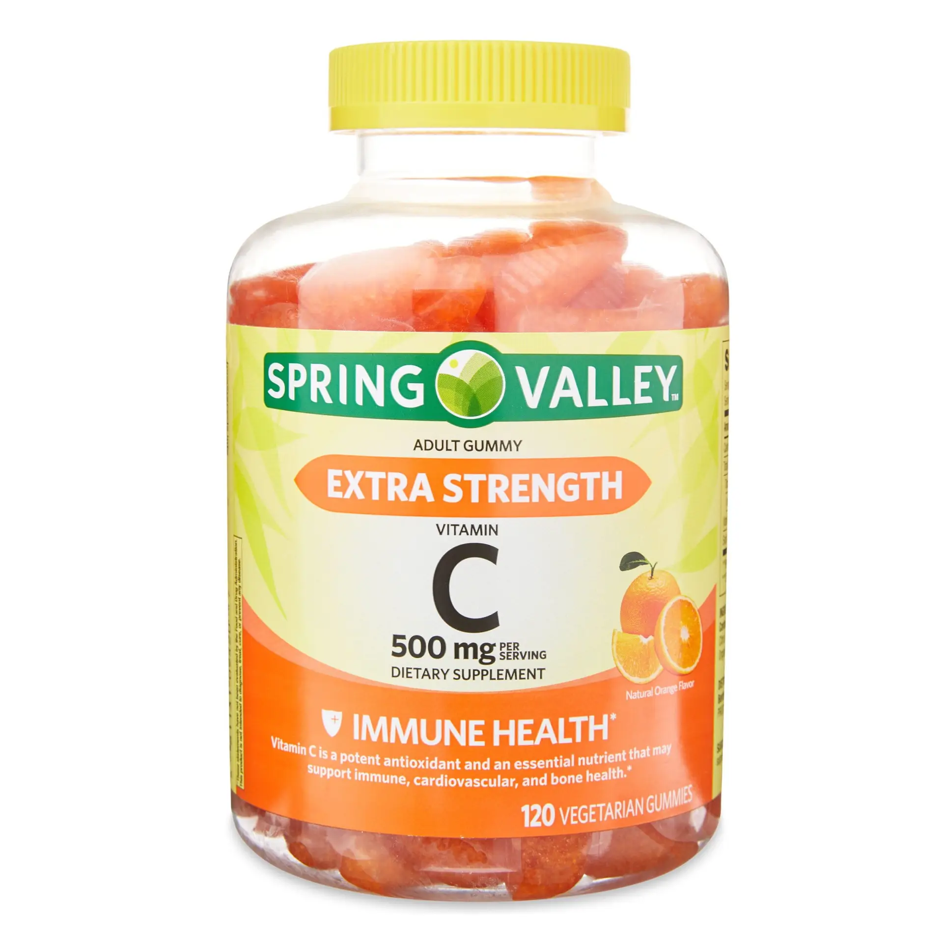 - Spring Valley Extra Strength Vitamin C Dietary Supplement Vegetarian Gummies, Orange, 500 mg, 120 Count