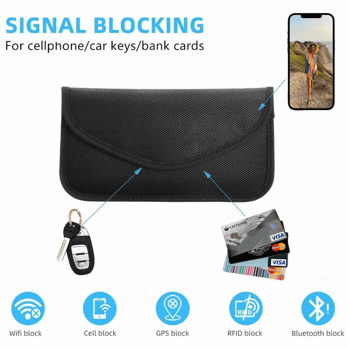 Faraday Bags for Phones, Cell Phone Signal Blocking Bag, RFID Phone Case,Faraday Bag for Phone & Key Fob(2 Pack)