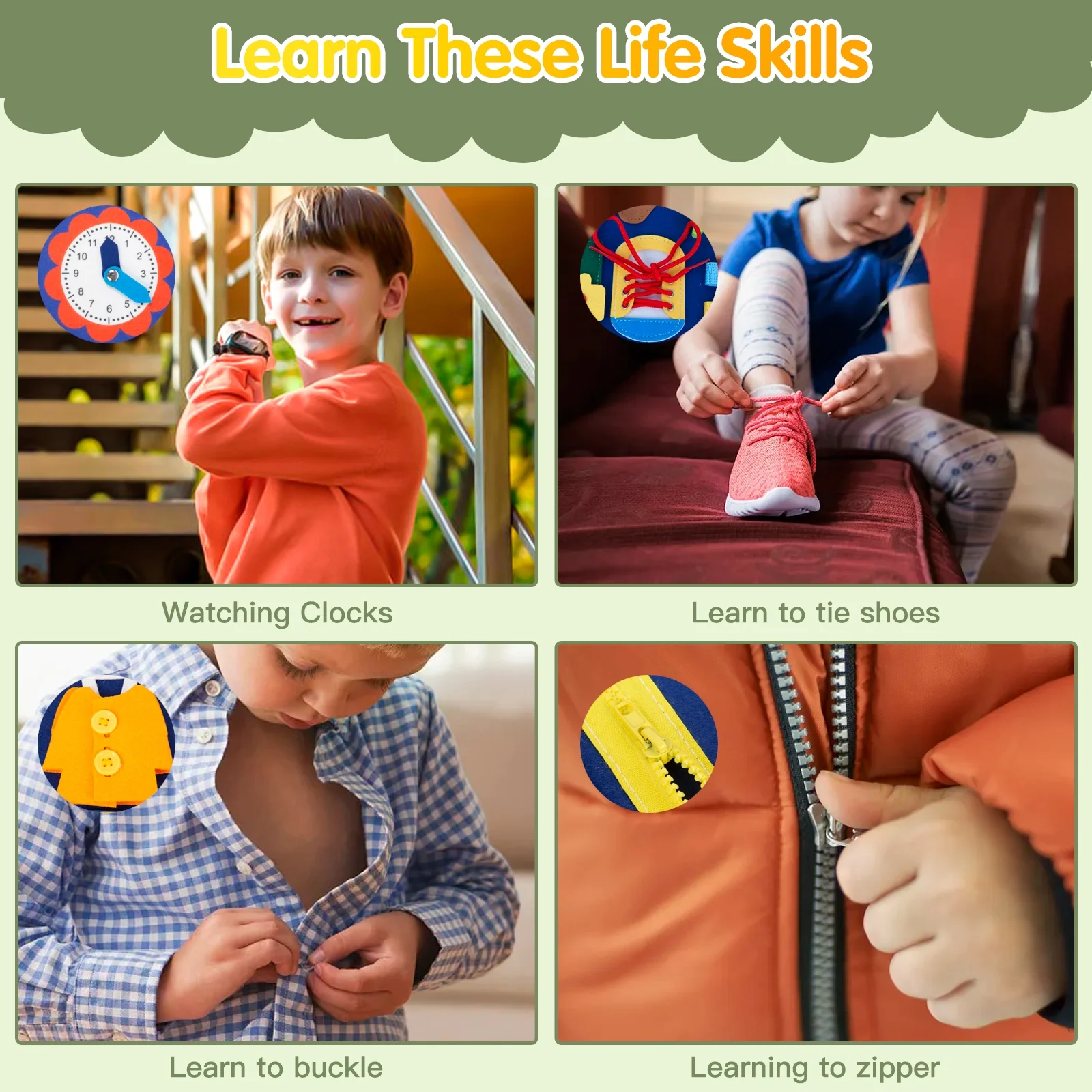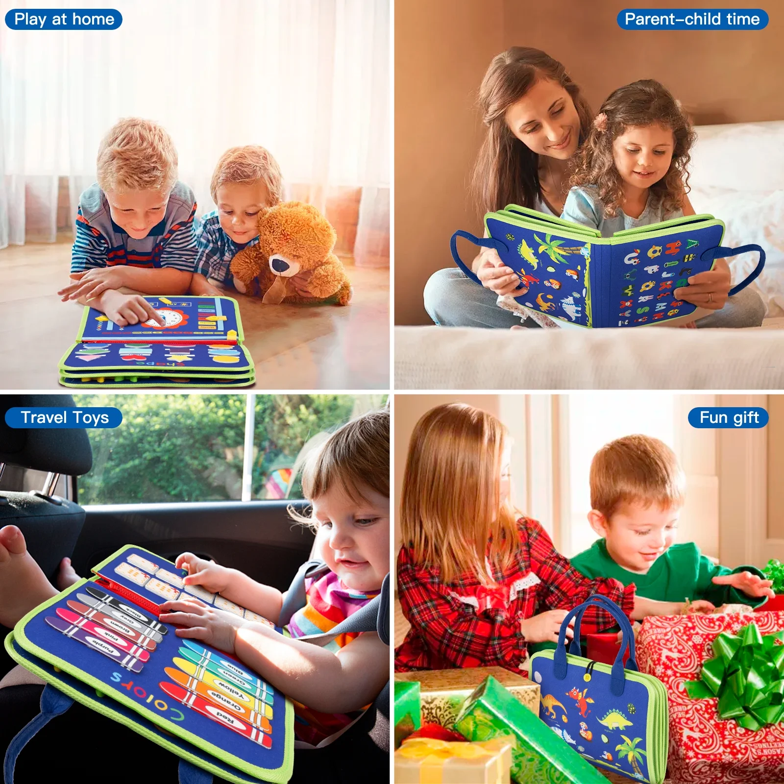 - 【Newly Upgraded】: Airhive Busy Board is the newly upgraded educational toddler toy designed to cater to the needs of children aged 1-6. Airhive toddler toy offers more activities, including dinosaur-themed adventures, early learning in letters, numbers, shapes, and colors, fun puzzles, and even life skills like buttoning, zipping, lacing, and Velcro.