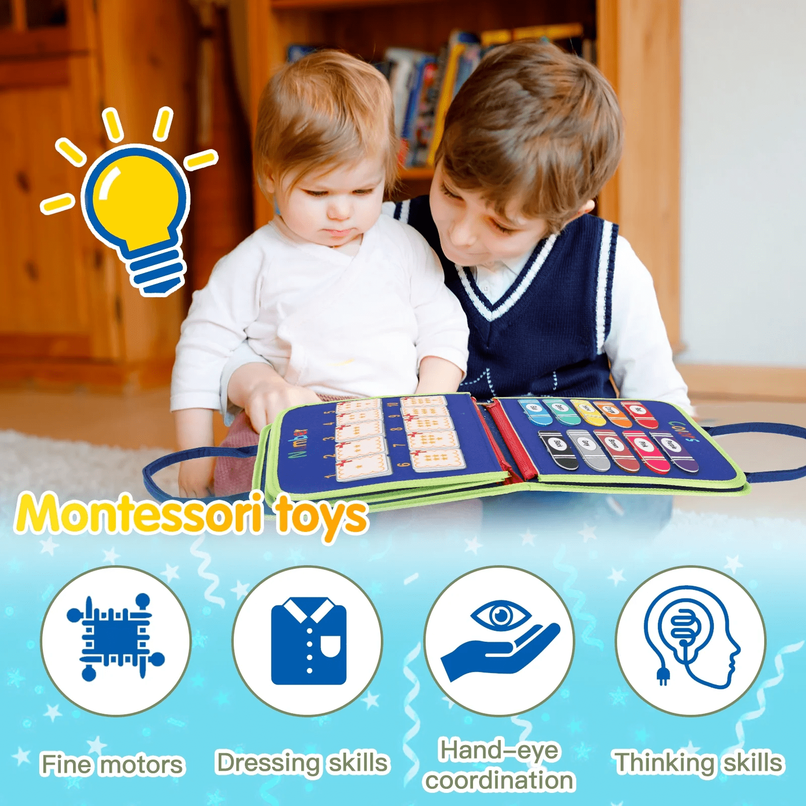 - 【Montessori Toy】: Airhive Busy Board follows the Montessori educational philosophy, encouraging sensory engagement, fine motor skill development, and fostering quiet, focused play and independent exploration. Airhive busy book’s the perfect sensory board to boost your child’s confidence and independence.