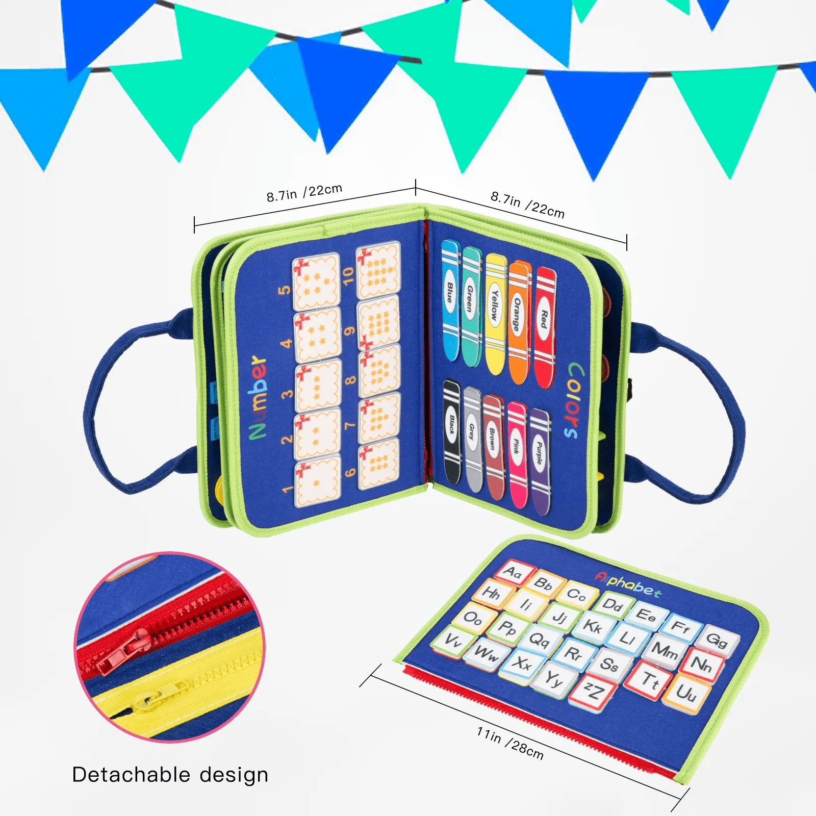 - 【Travel Toy】: Airhive Busy Board features a portable, hand-held design and crafted from durable felt material, is free from small parts for enhanced safety. It’s perfect for keeping kids happy and focused during long car rides, flights, or waiting times. Airhive Busy Board is the ideal travel toy.