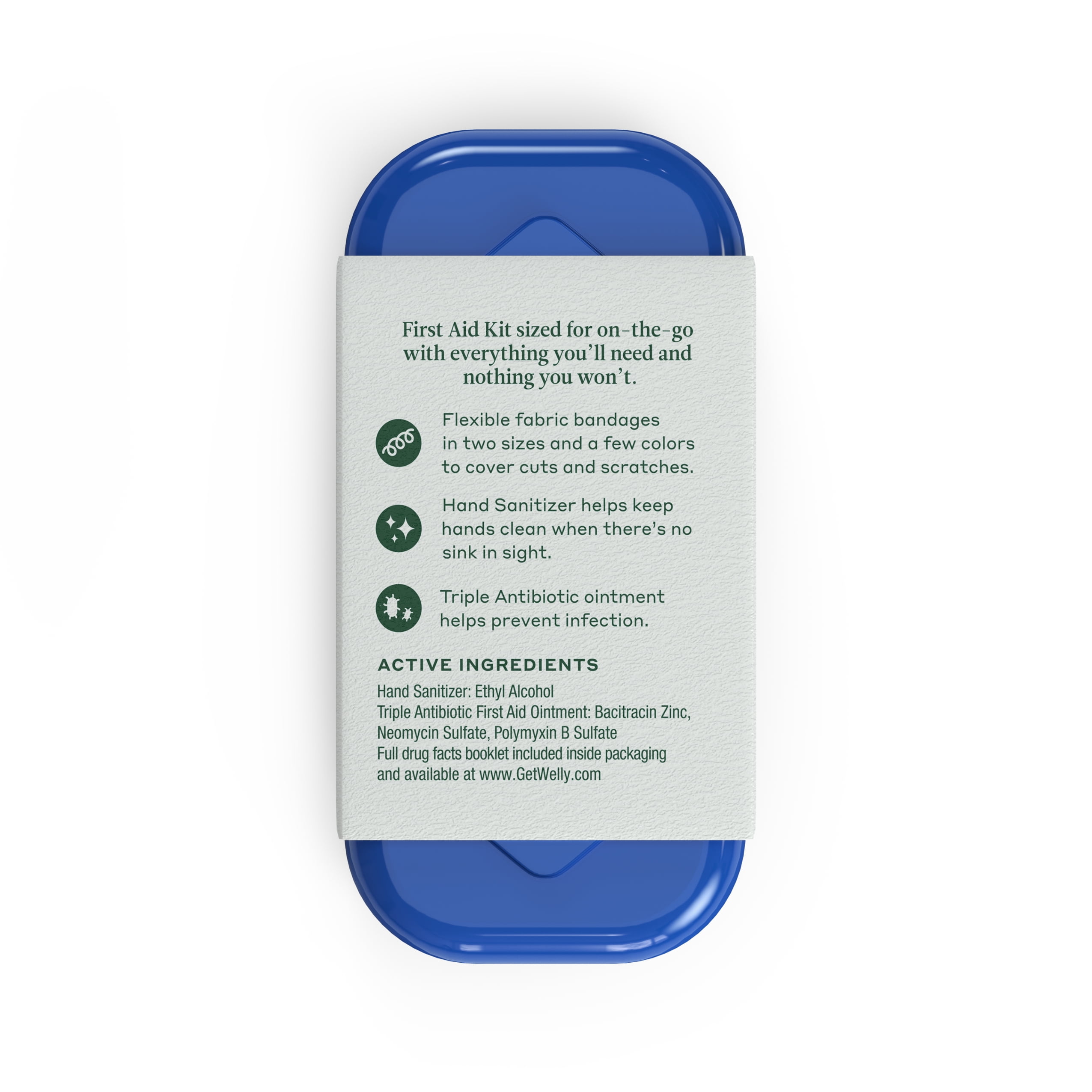 Our 24ct First Aid Kit will never leave you stranded. This handy portable tin is packed with colorful first aid essentials like bandages and ointments for every adventure ahead. Keep one on hand for wherever life takes you. Welly is for everyone that was afraid to fall down, fail, get bumped, get scratched and did it anyway. Welly is for the wellness in all of us, however that looks, and for being prepared for whatever comes our way. We wear our bandages like badges of honor for a life fully lived. Our portable first aid kits are packed with essentials, so you have what you need, when you need it. And our signature Welly tins can be reused again and again—the possibilities are endless.