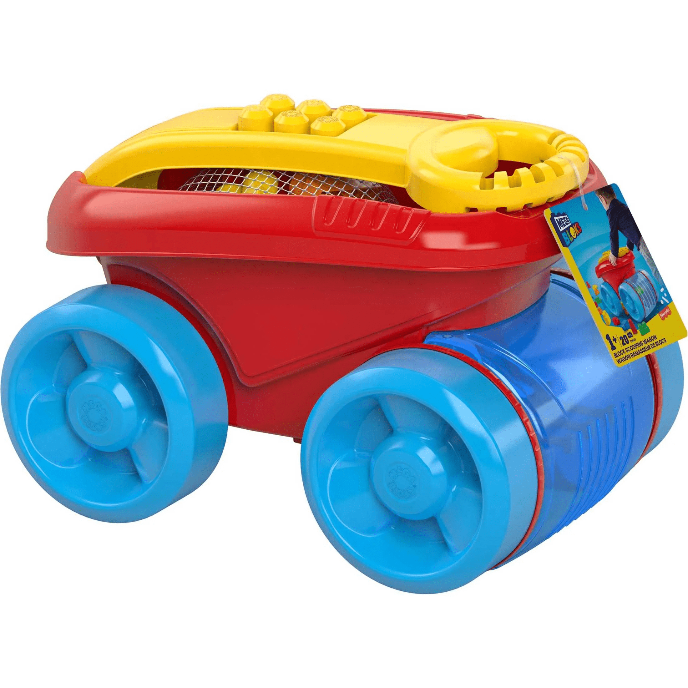 Toddlers can roll into playtime with the Block Scooping Wagon. Little builders can pull or push their wagon to scoop up blocks and watch them spin inside. Then, they can dump the blocks and use them to bring their imagination to life by building on the handle. When playtime is over, blocks can be stored inside the wagon for easy storage and cleanup.