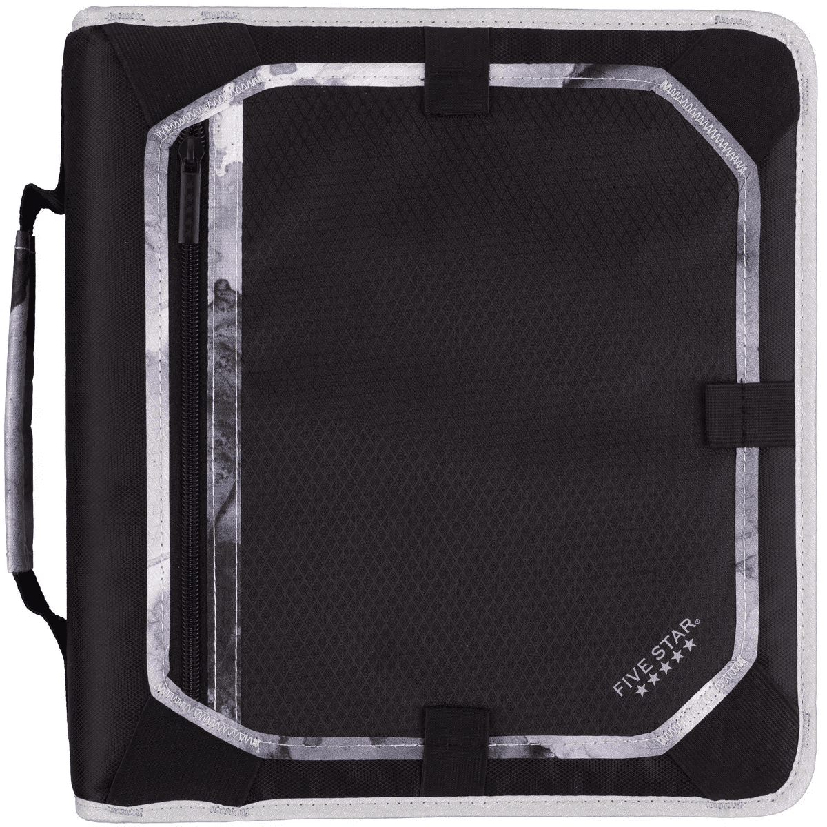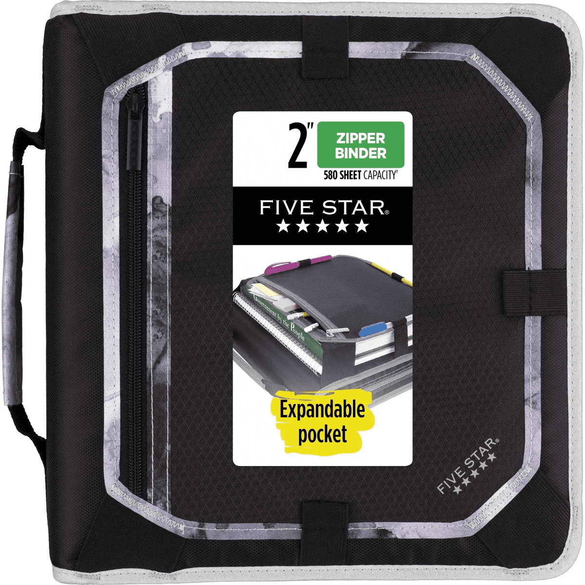 LASTS ALL YEAR. GUARANTEED!* The Five Star® 2″ Zipper Binder + Expansion Panel is durable enough to stand up to your busy schedule. Zipper binder has exterior expansion panel to store textbooks and notebooks without needing to unzip to access. Three binder rings hold 380 sheets and 5-pocket expanding file holds 200 sheets for a total of 580. Three exterior pen loops and zipper pocket holds pens, pencils and small supplies. Interior guested Velcro® pocket and mesh zipper pocket. Binder features carrying handle, zipper closure and fits in a backpack. Available in Black/Gray. *Guarantee is valid for one year from purchase date. Does not cover misuse.