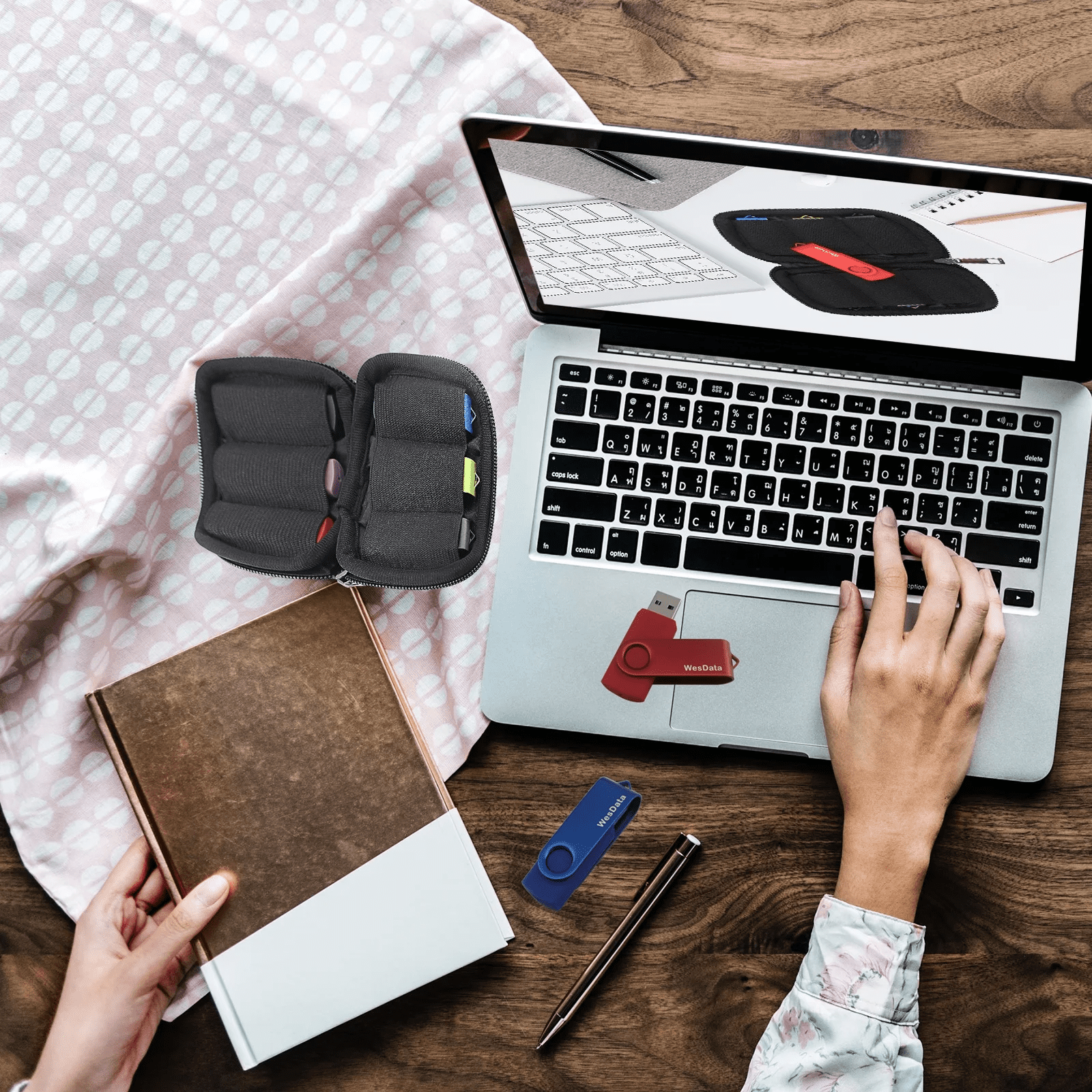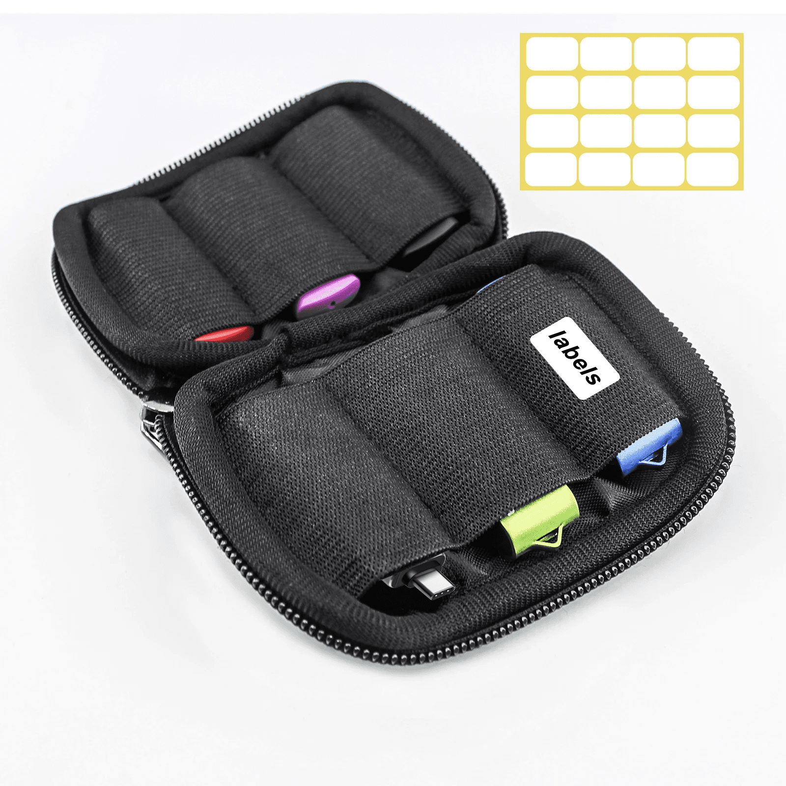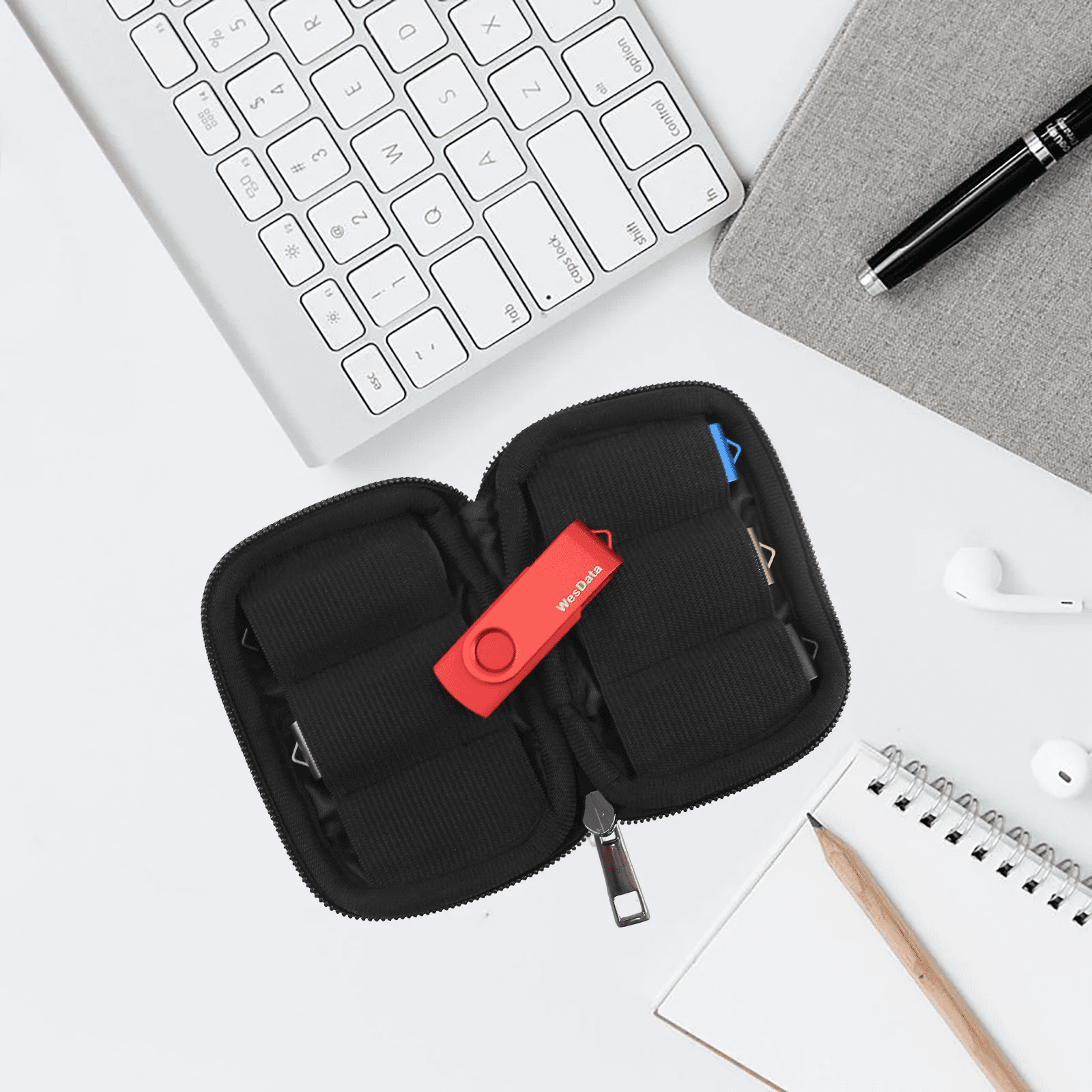 - Black soft bag with 6 slots to store and protect your USB drives, small adapters, earphones, and keys