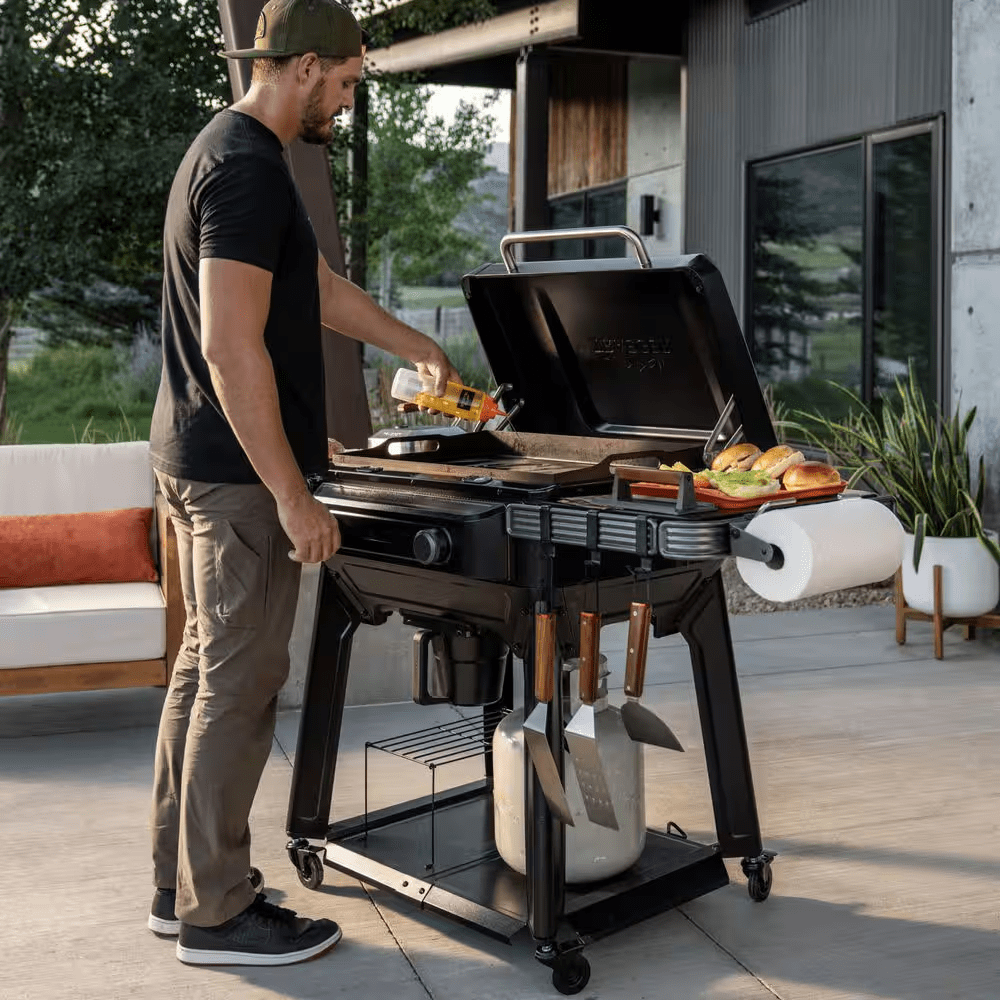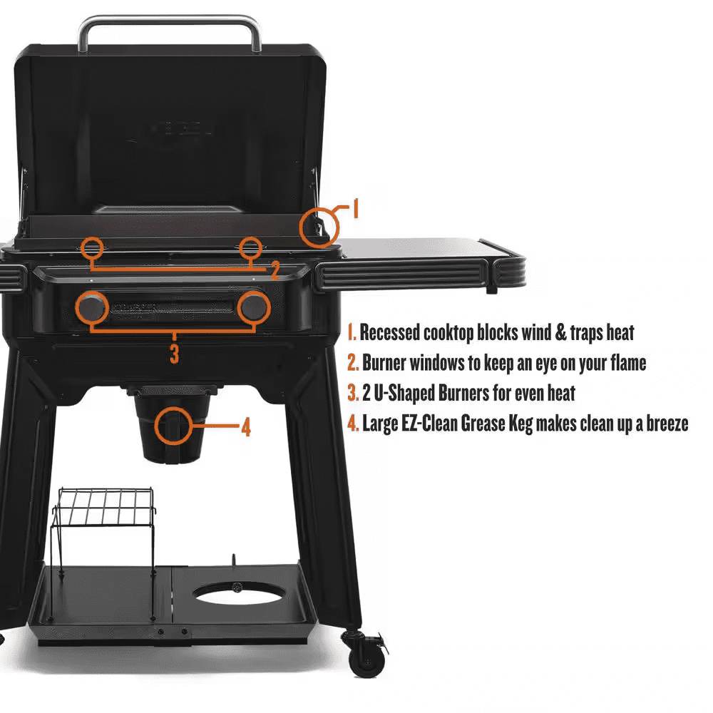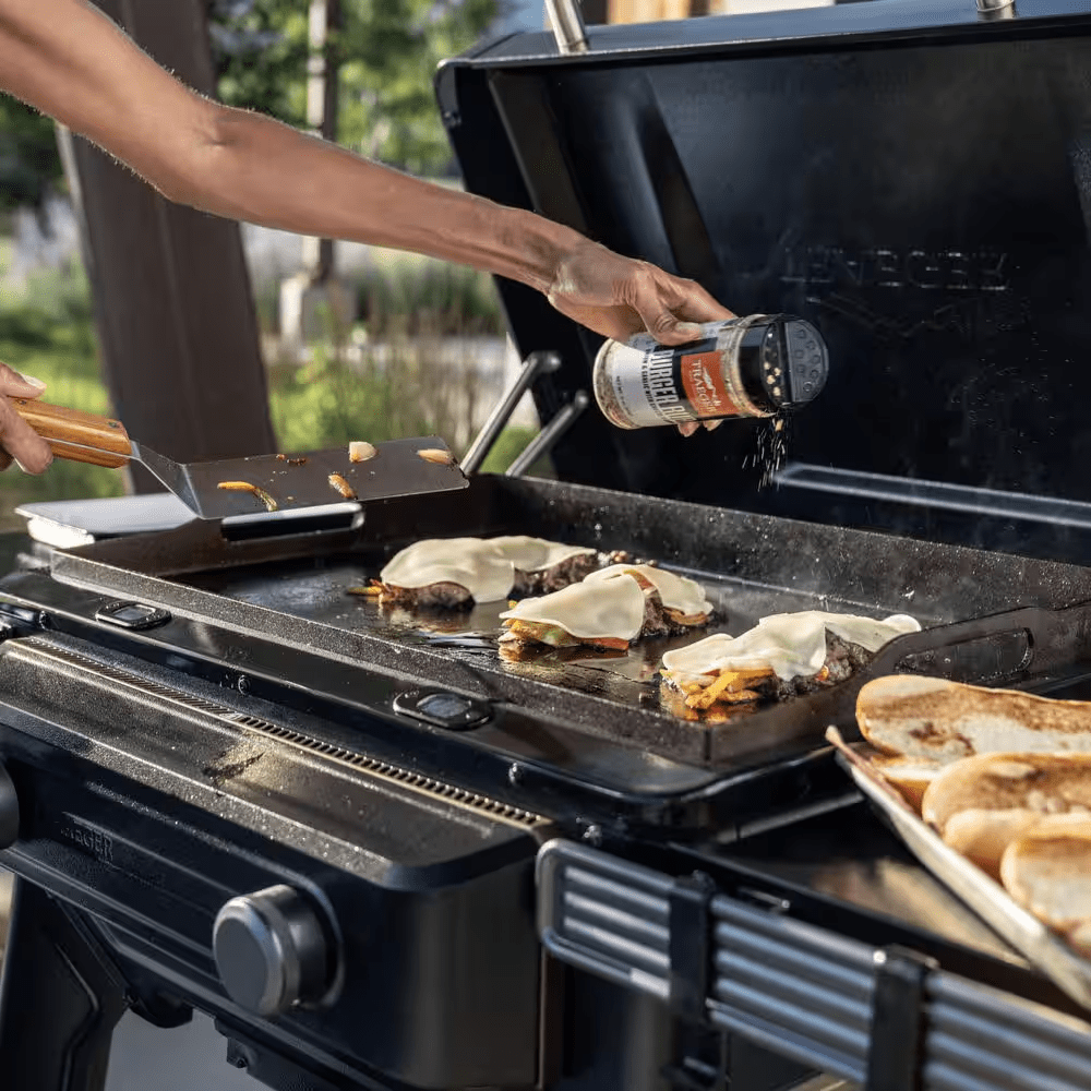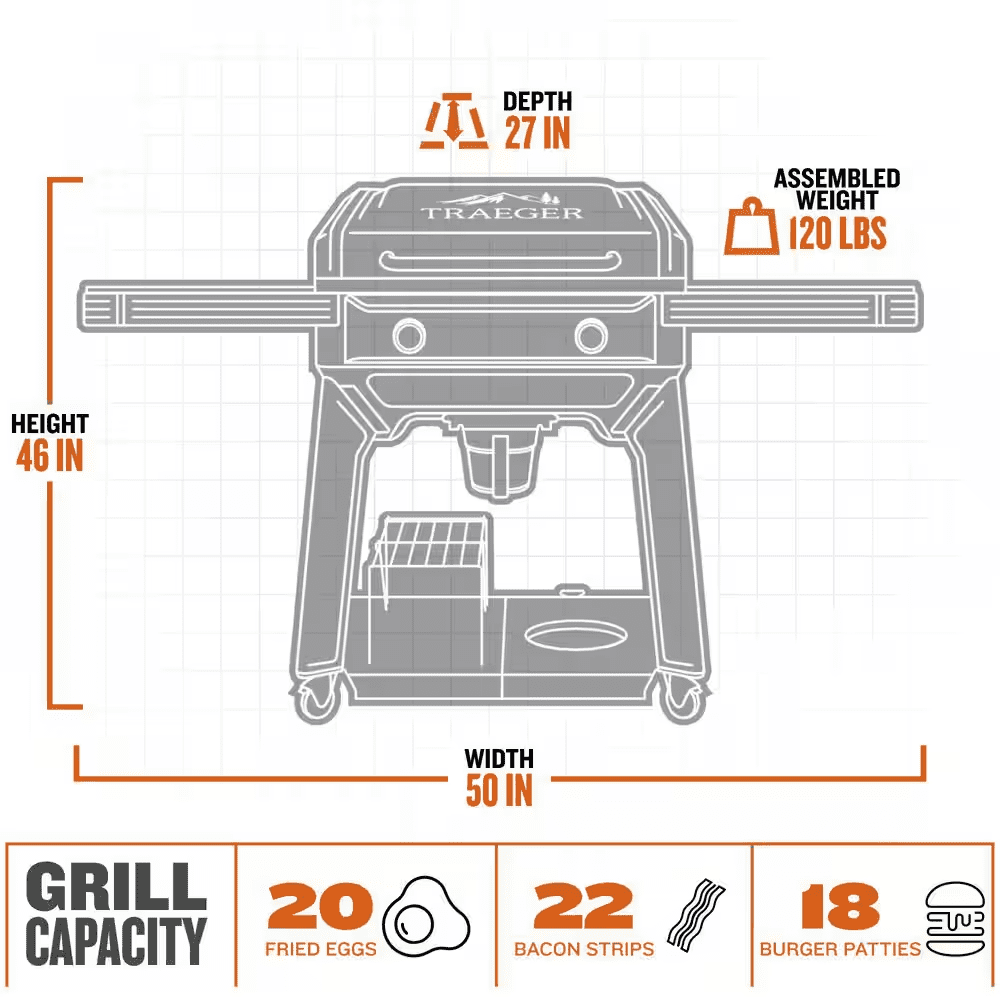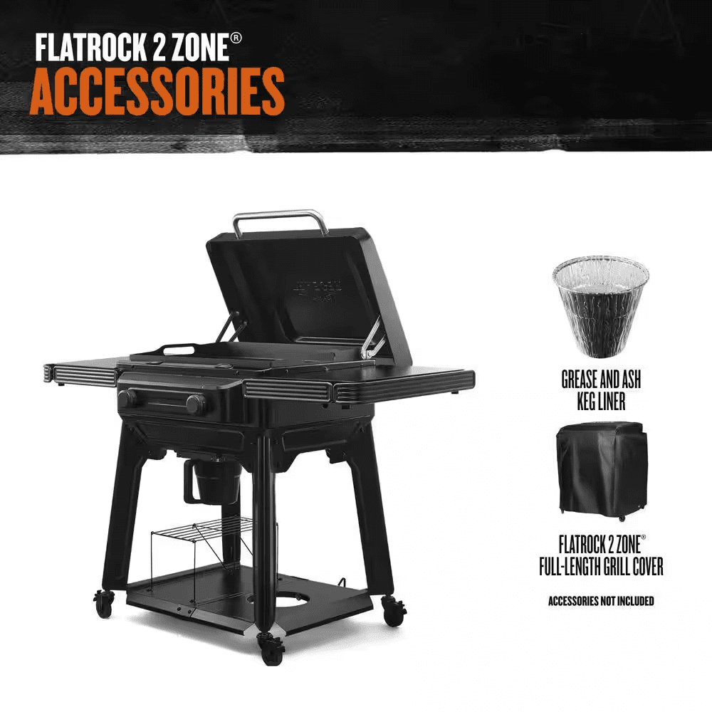 Experience superior flat top cooking with the Traeger Flatrock 2 Zone Grill. Open up a whole new world of griddling, frying, steaming, sauteing, and more, all backed by the premium quality and innovative features you’ve come to expect from Traeger. The Flatrock 2 Zone offers the versatility to fire up every meal with exceptional searing, deeper flavor, and makes cooking fun.TruZone temperature control features two distinct cooking zones separated by HeatShield insulation, allowing you to cook multiple dishes at once with total temperature control. FlameLock construction blocks wind and keeps heat where it should be for better fuel efficiency and more burn for your buck. Plus, innovative U-shaped burners ensure consistent heat distribution across the entire cooktop surface, so you can use every square inch. The EZ-Clean Grease & Ash Keg makes cleanup a breeze, and the P.A.L. accessory rail allows you to easily customize your Flatrock your way.