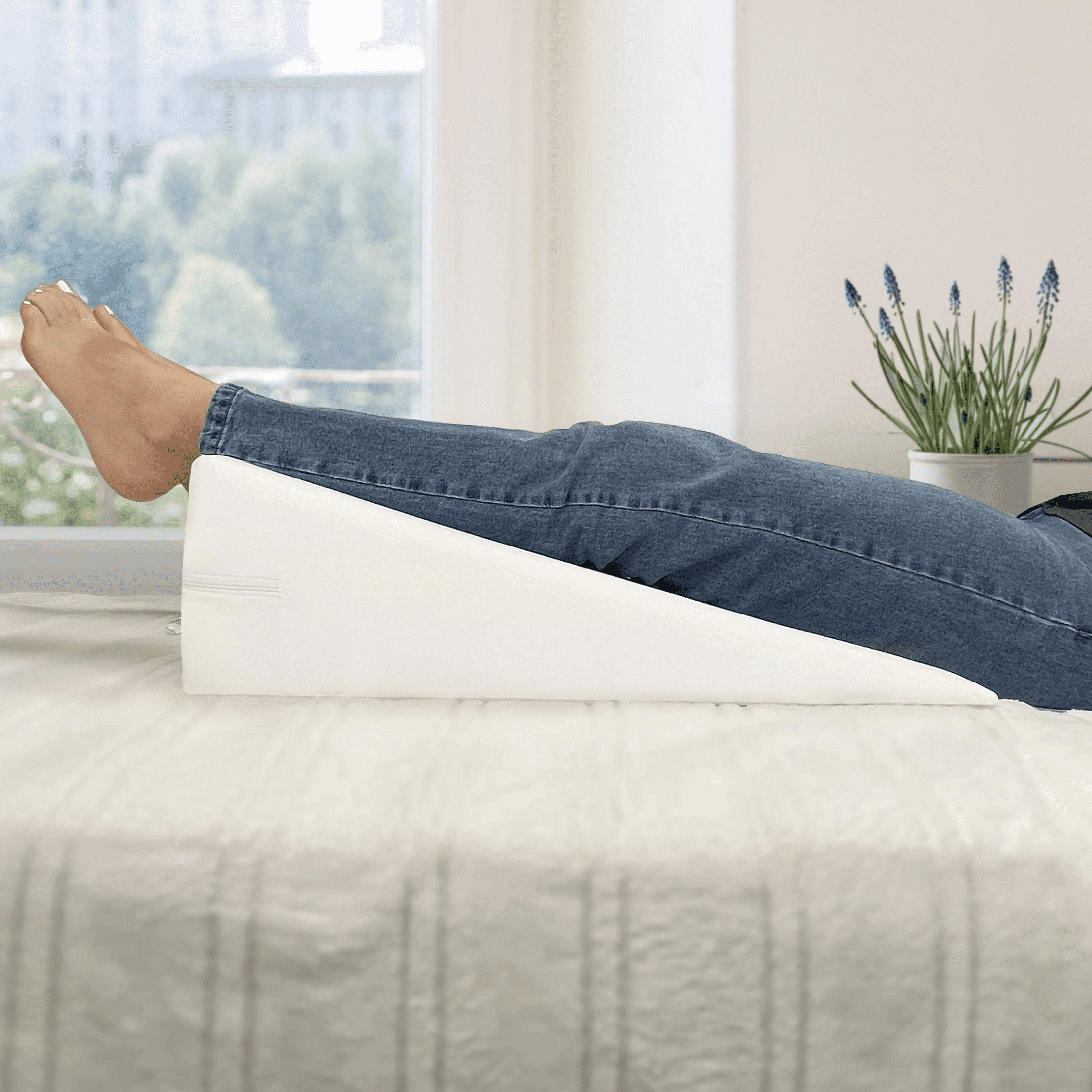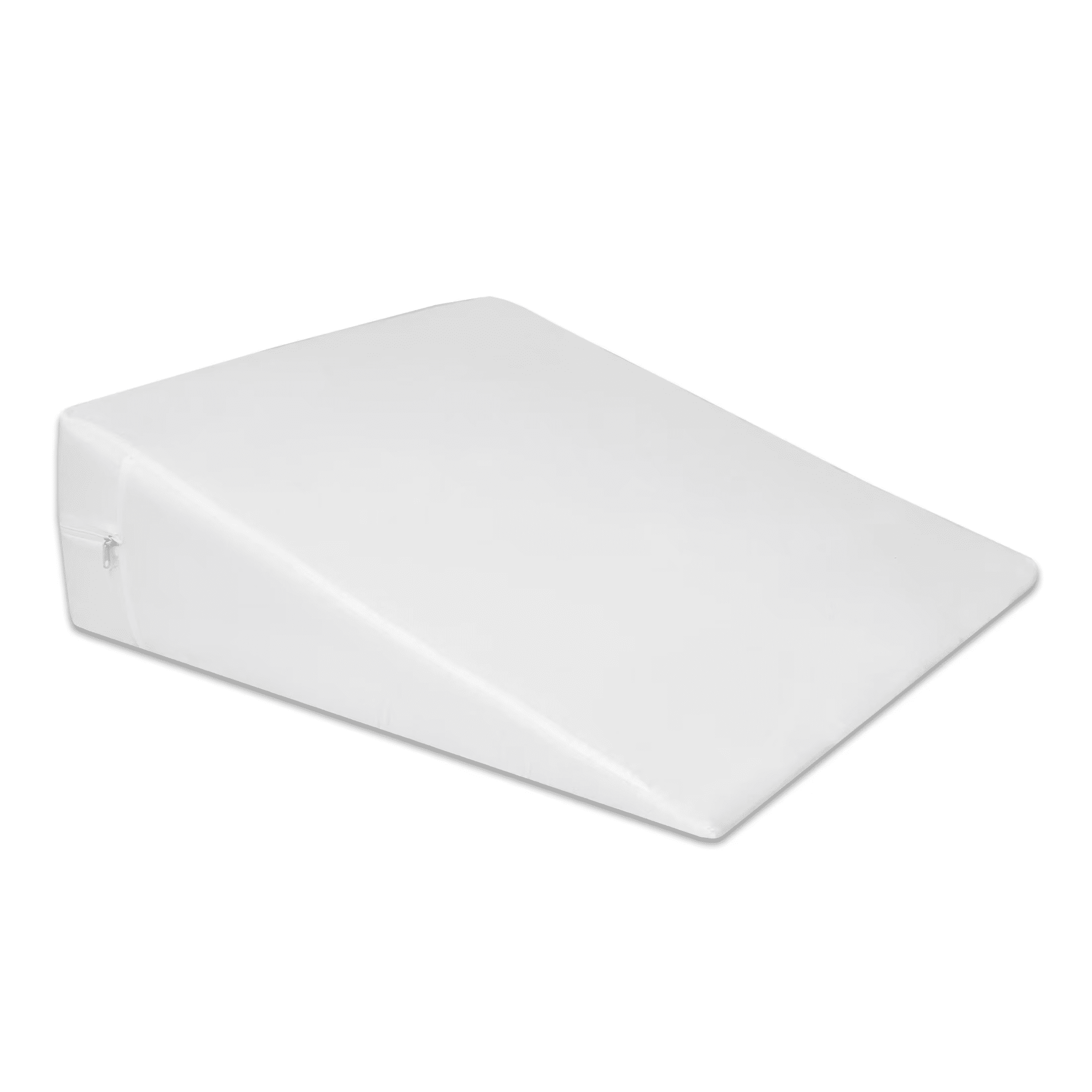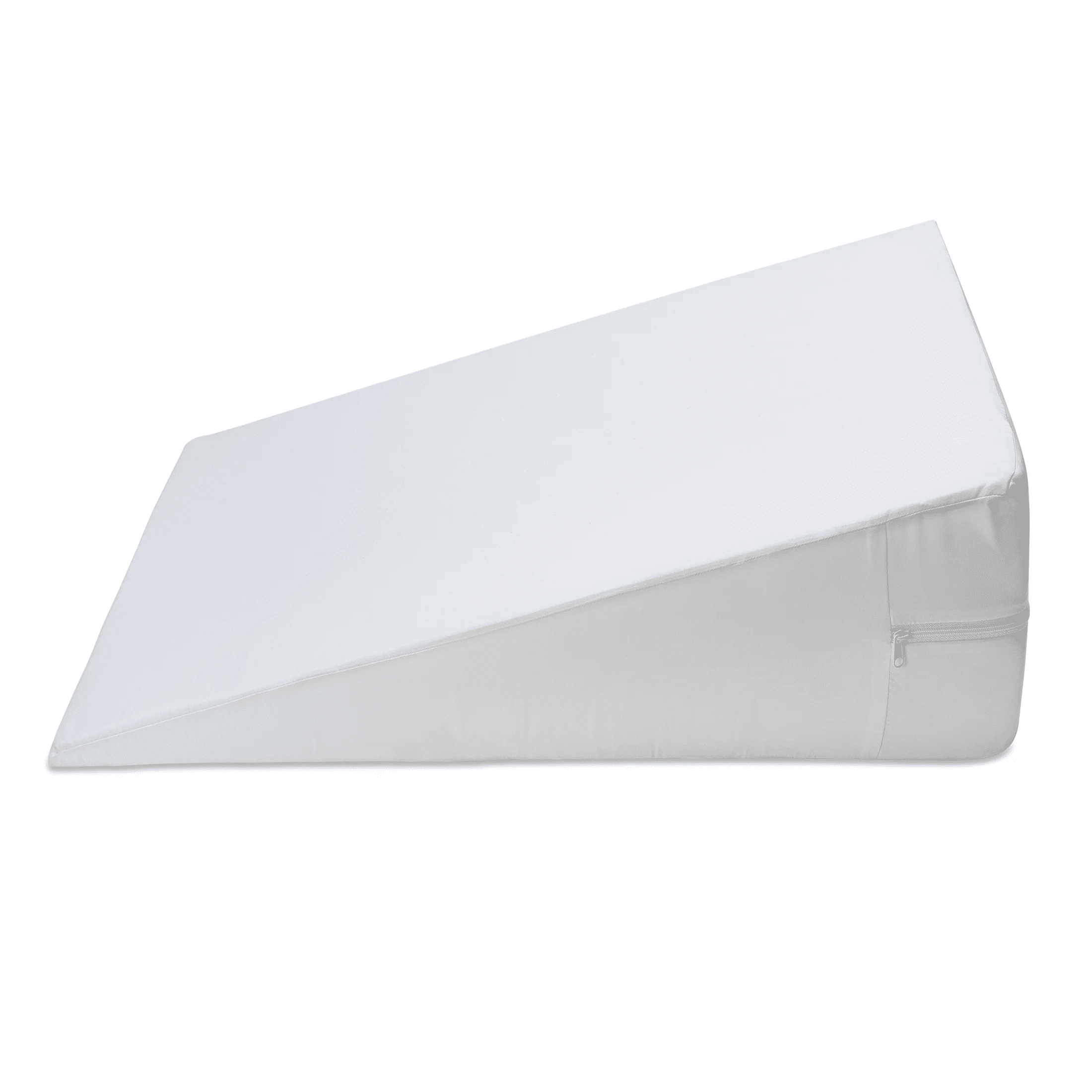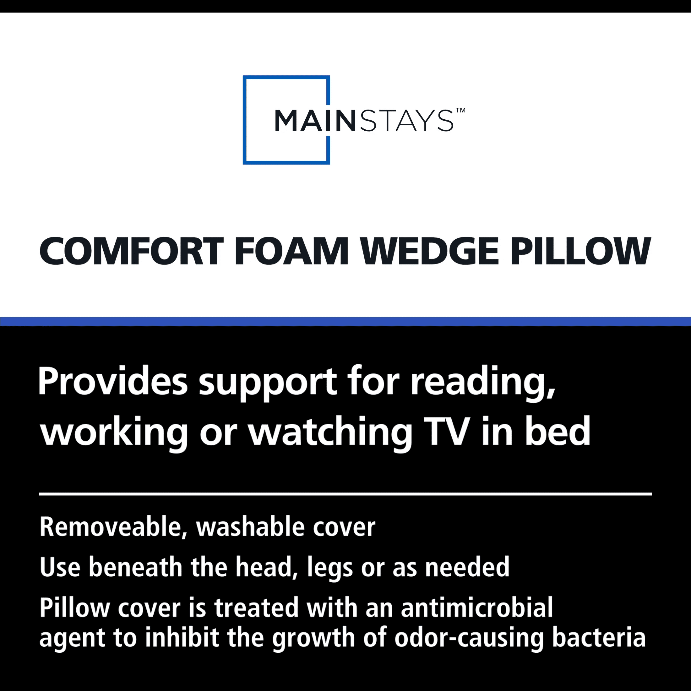 The Mainstaysâ„¢ Comfort Foam Wedge Pillow provides support for reading, working or watching TV in bed. Created with premium high-density support foam, the Mainstaysâ„¢ Comfort Foam Wedge Pillow provides the perfect combination of comfort and support. This multi positional wedge pillow can help support upright posture in adults while releasing pressure on the upper back muscles. Sleeping at an inclined angle can help drain your sinuses and open your airways. This helps alleviate chest congestion so you can breathe easier. It is ideal for elevating the legs for increased circulation.