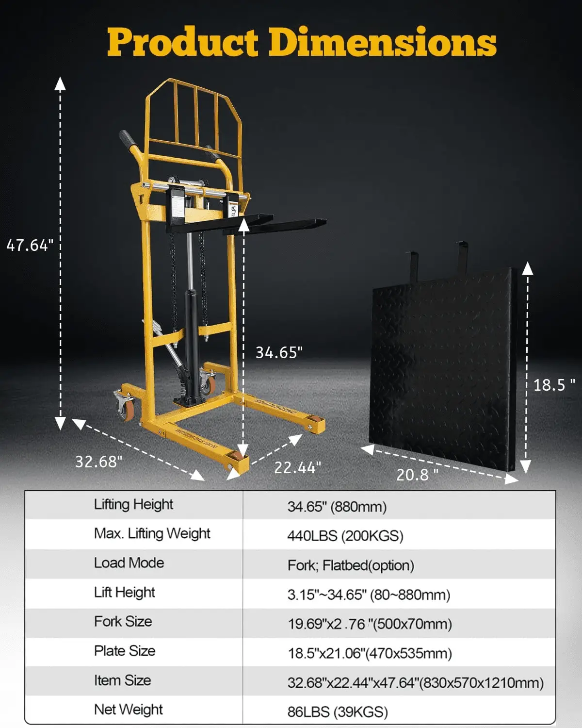 - Handle Heavy Loads with Confidence & Stability: Safely and securely lift up to 440 lbs of various materials using the adjustable and stable forks. Designed for demanding tasks, this material lifter provides reliable performance you can count on.