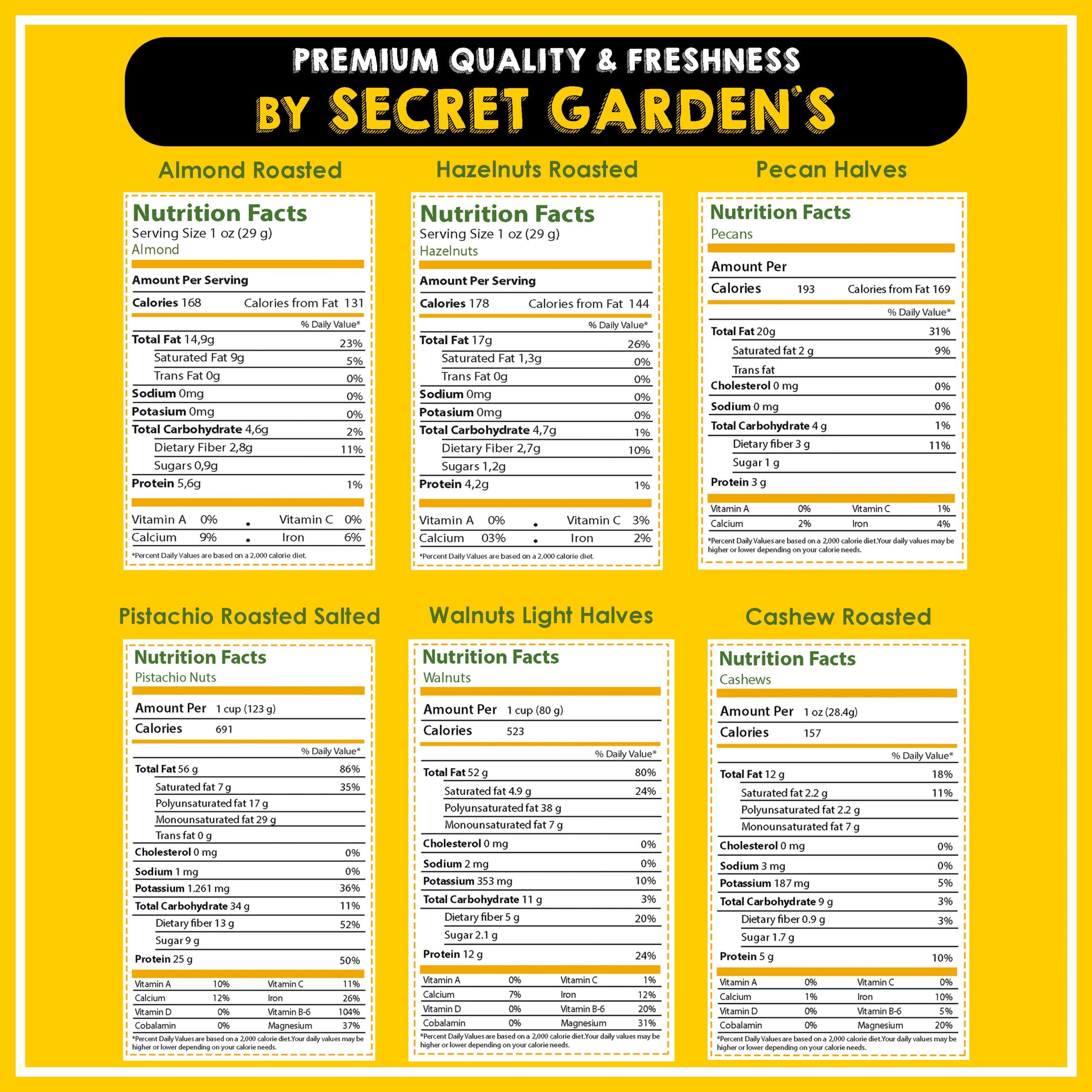 - 🎁Gourmet assortment. Pecans, California Walnuts, Cashew, Roasted Almond, Turkish Hazelnut, Pistachios.