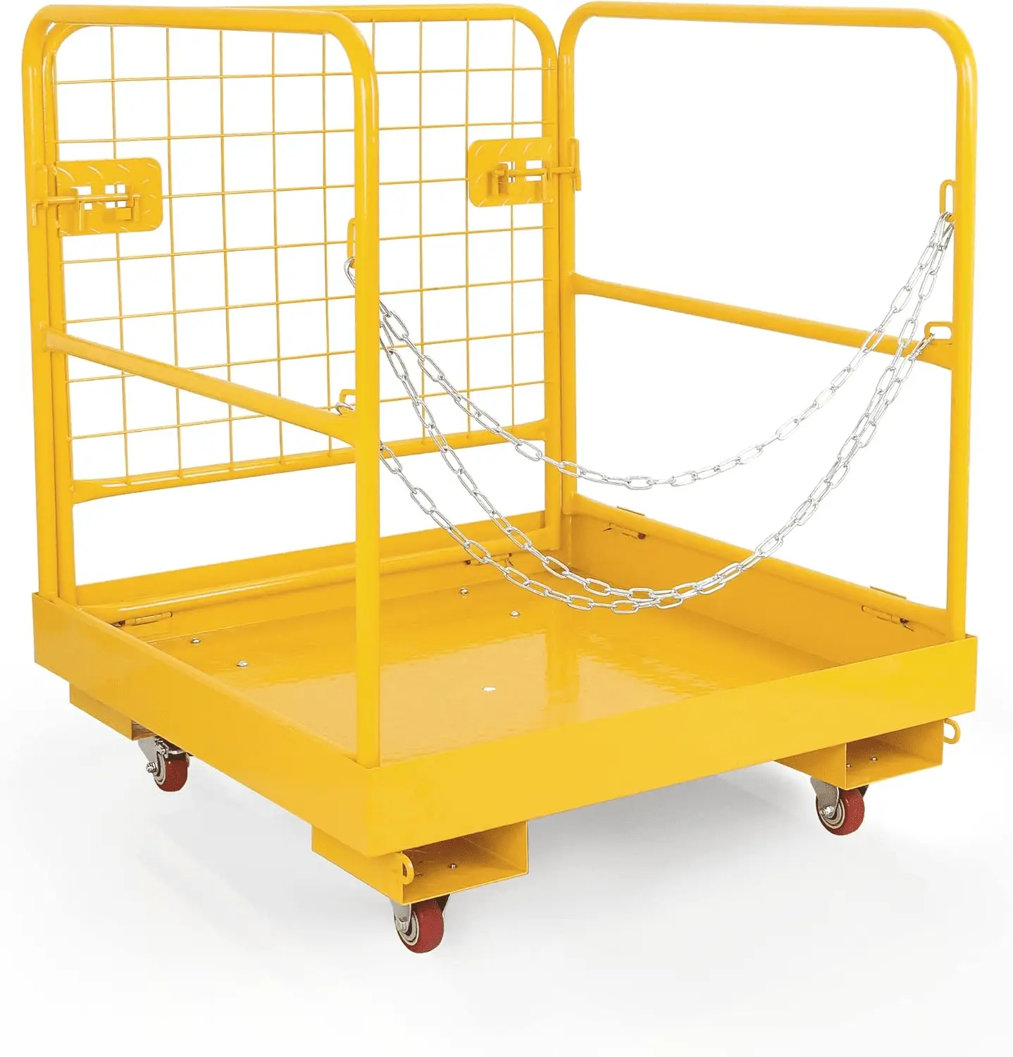 - 🔔 [All-encompassing Protection] Keep yourself and your employees safe with this heavy-duty steel basket. It is reinforced with guardrails and a non-slip floor to help prevent falls and injuries. It also has a mesh safety screen that helps keep you securely inside. Additionally, there are double chains that make getting in and out easier.