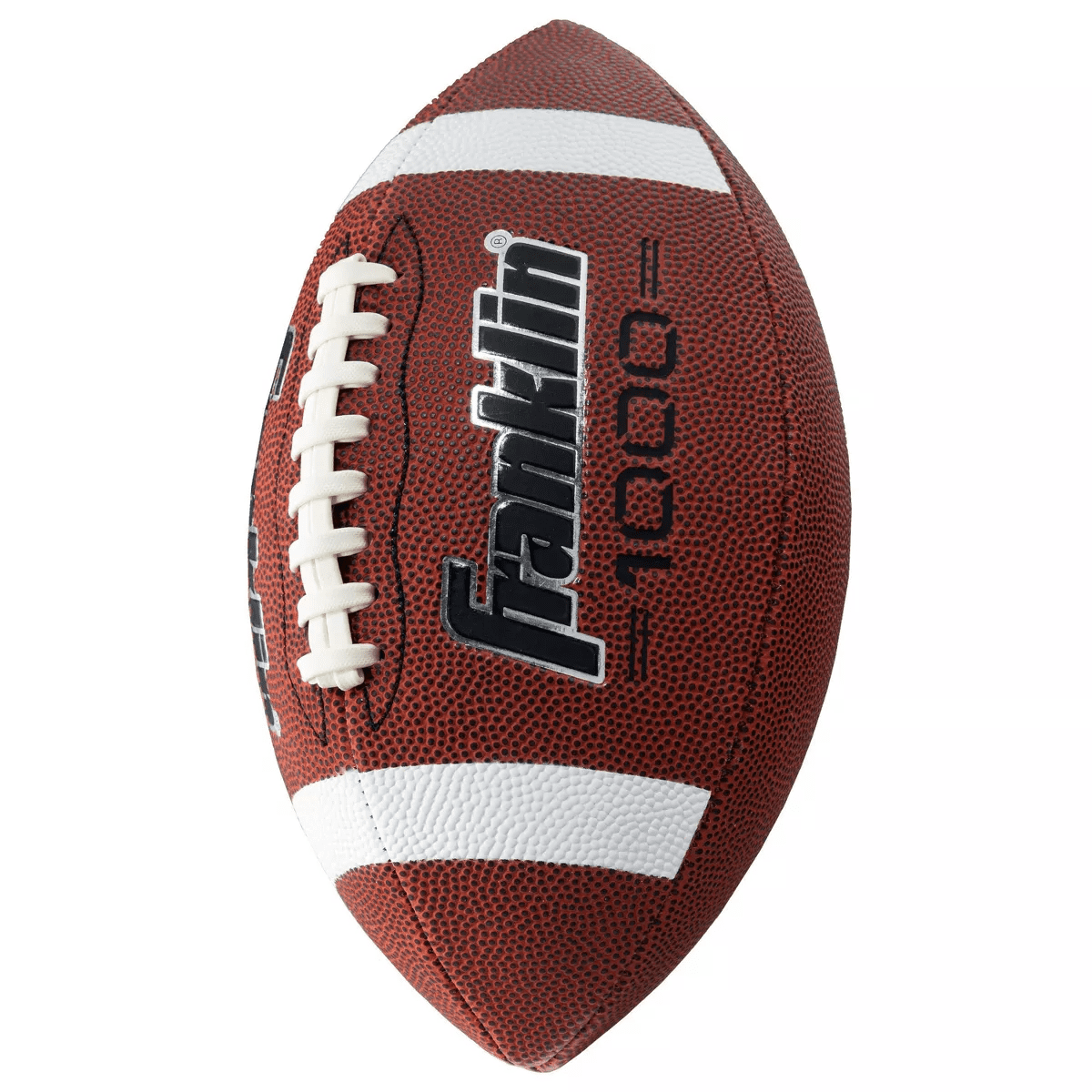 Get outdoors for football fun with the Franklin Sports Official Size 1000 Outdoor Football! This official size football is perfect for all players to grip and throw the ball with ease. Constructed with a durable, synthetic leather surface, these footballs are built to stand up to all-weather play year after year. The deep-pebble surface increases grip so players can easily pass and catch the football even in the rain. This outdoor football is also designed with hand sewn laces for a professional feel that will help all players throw their best spirals. Available in single footballs and (12) football bulk packs, you can find official size outdoor footballs for you and your whole flag football team! The bulk football packs also come with an air pump with an inflation needle included, so you can keep your footballs in perfect condition. This football season, get out in the yard with the best outdoor football equipment and grab yourself a Franklin Sports Official Size 1000 Outdoor Football today!