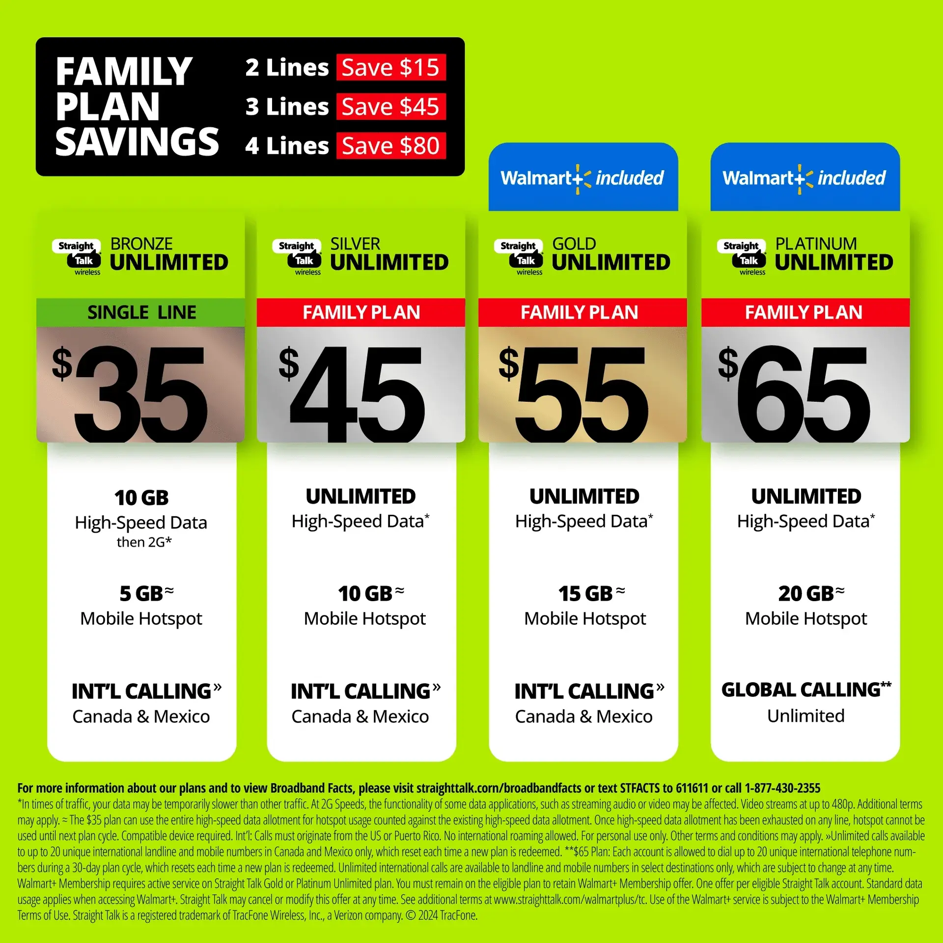 - Family plans with Unlimited data, talk & text starting at only $25/line/mo.