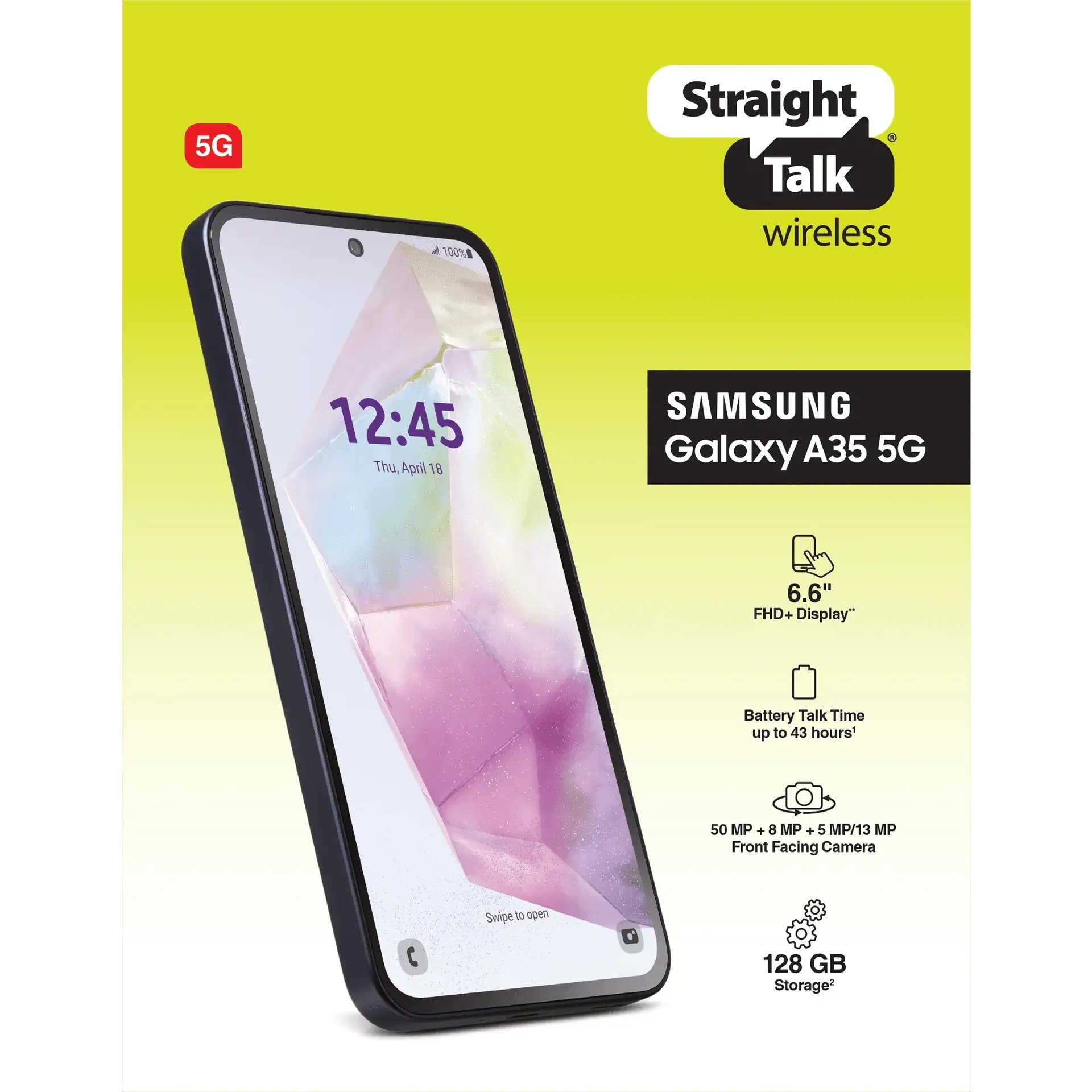 Featuring amazing capabilities packed into a durable outer shell – go full-speed without holding back with the Samsung Galaxy A35 5G from Straight Talk.