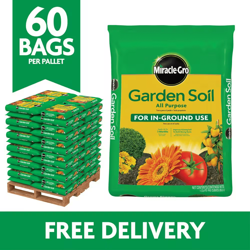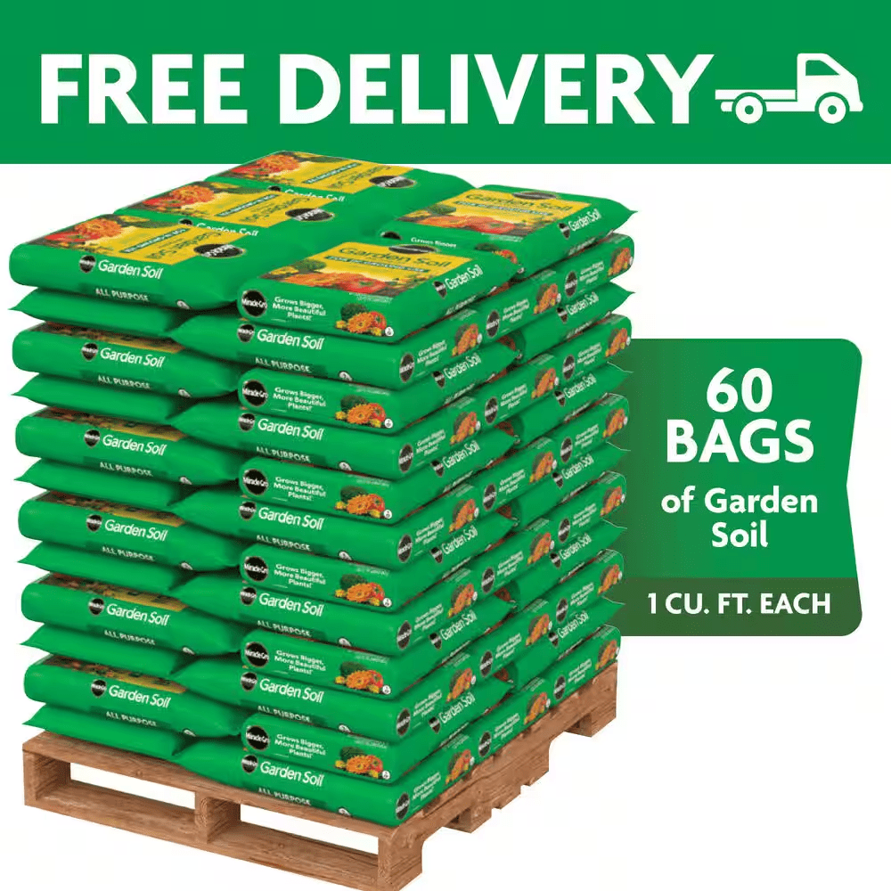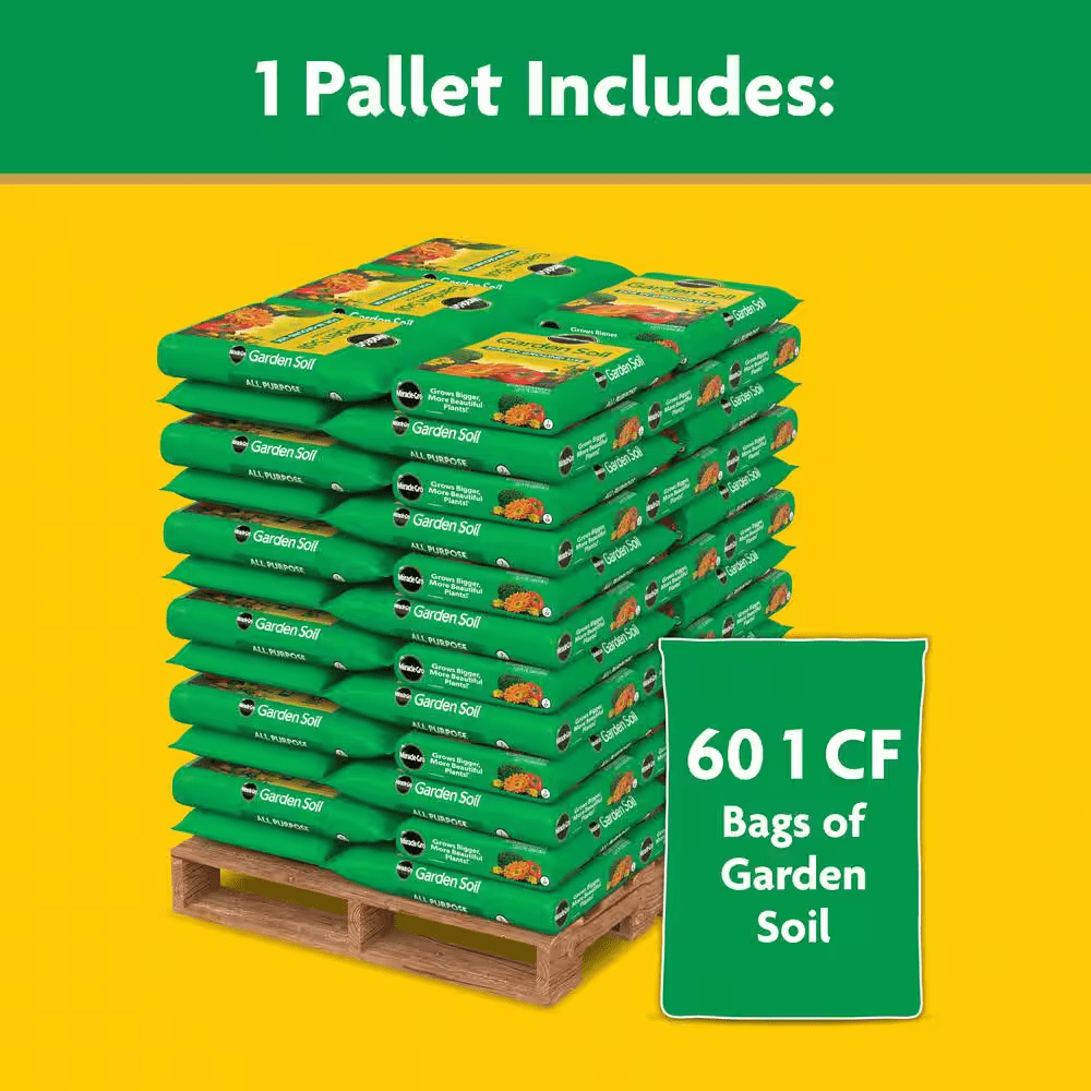 - Pallet contains 60 cu. ft. of Miracle-Gro garden soil