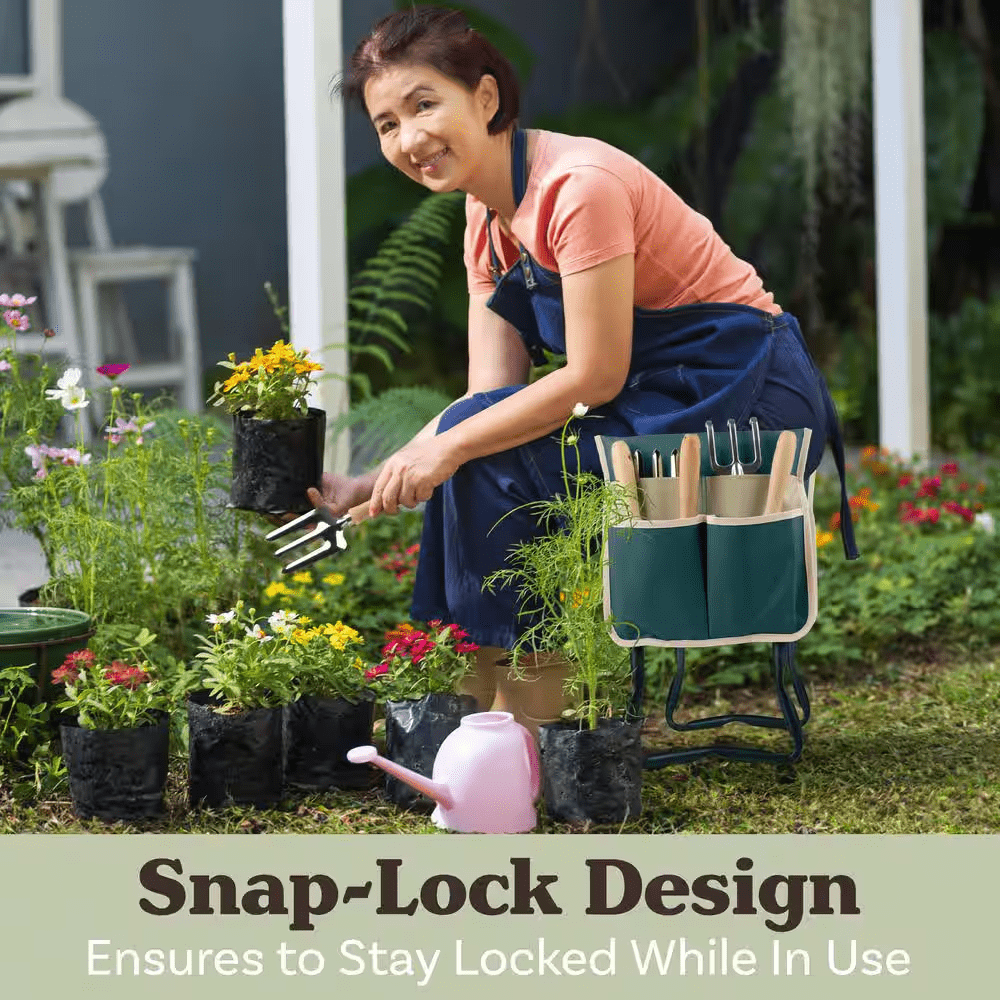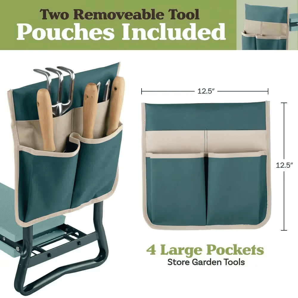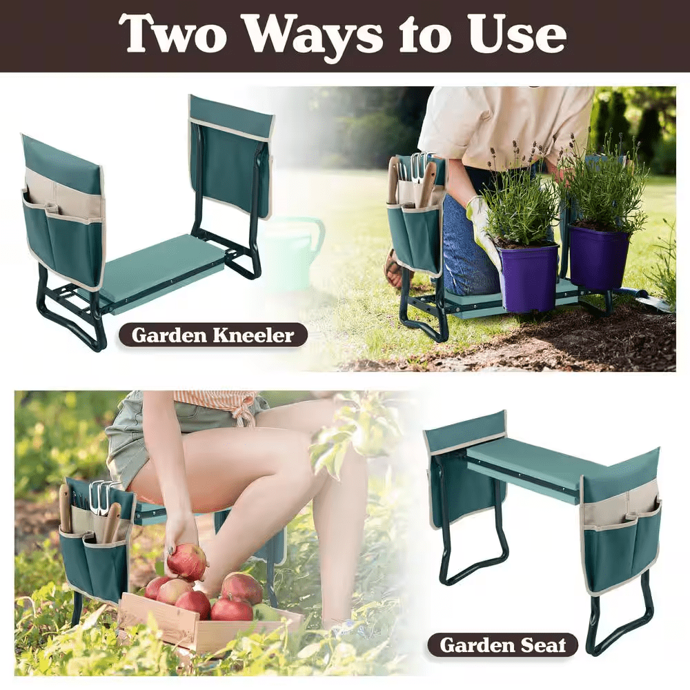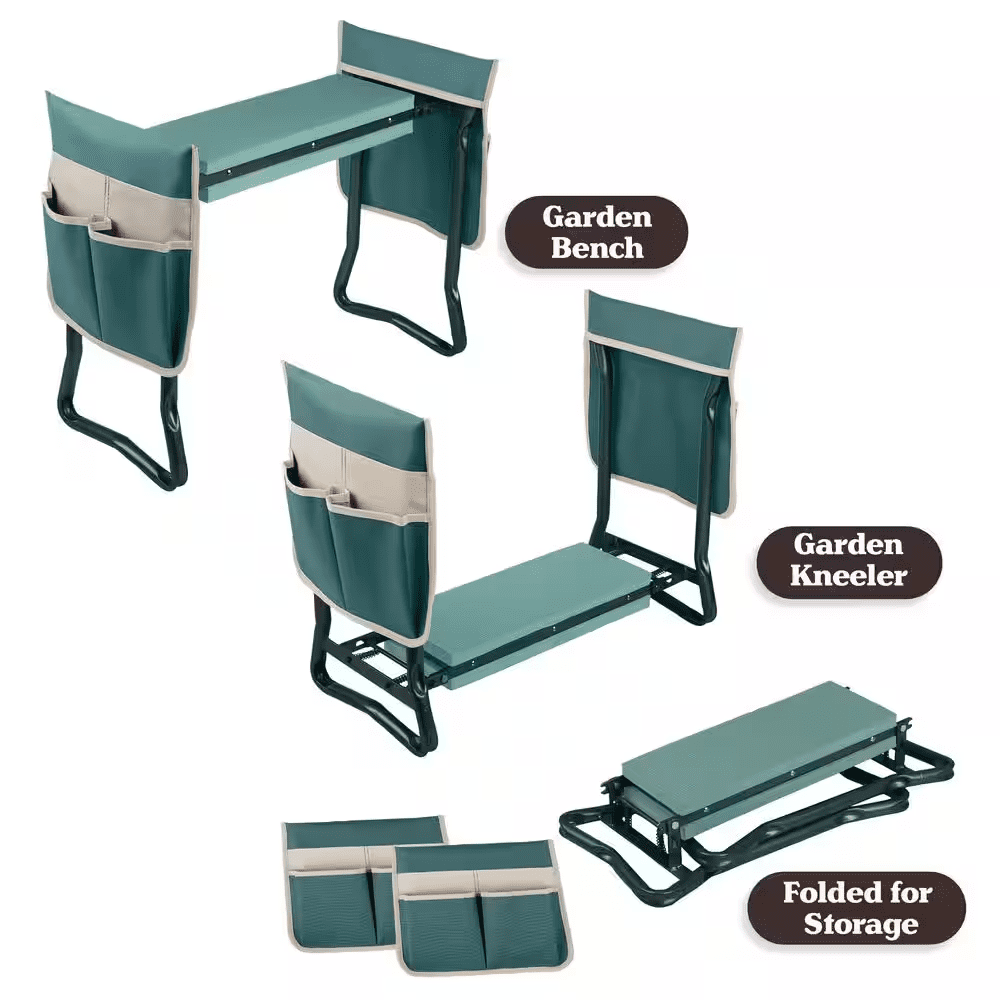Stay comfortable while you keep your lawn or garden looking beautiful with the Garden Kneeler Bench by Pure Garden. This dual-purpose garden kneeler and seat with a weight capacity of 300lbs features a durable steel frame that folds for compact storage, two handles with convenient tool pouches, detachable leg protectors, and an EVA foam pad with ample cushioning for your knees. Whether you’re planting flowers, pulling weeds, or picking vegetables in the garden, this versatile bench helps reduce aches and keep your knees off the ground.