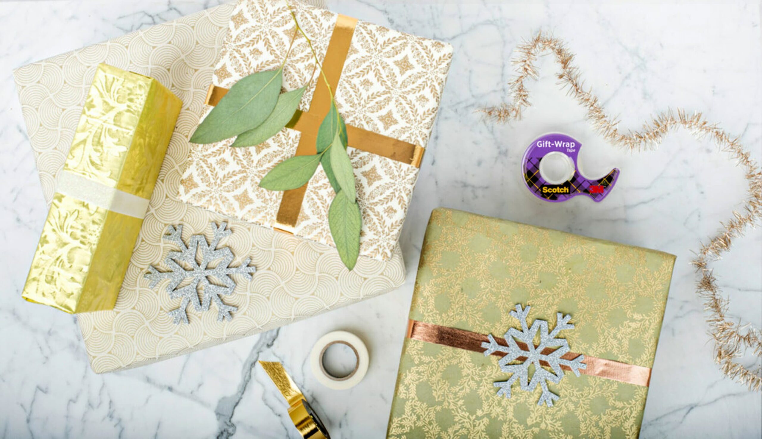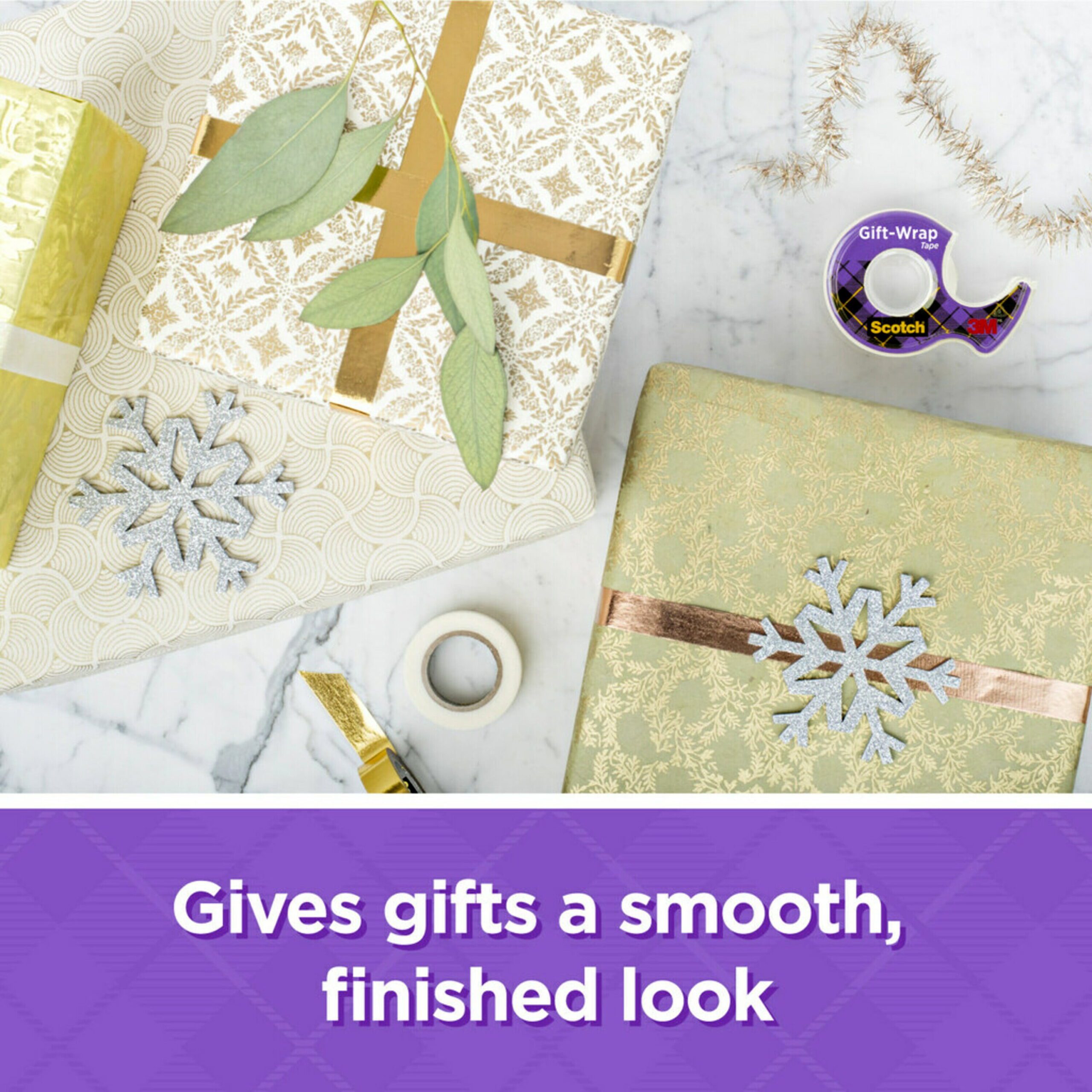 Scotch Gift Wrap Tape, 3/4 in. x 600 in., 2 Dispensers The perfect gift should always have the perfect wrap. Scotch® Gift-Wrap Tape gives gifts the best wrap you can get. It’s strong and secure. But most of all, it disappears with the help of 3M technology. Our unique satin finish gives your gift wrapping a smooth, finished look. The dispenser (included) fits neatly into a drawer and is always ready to get the job done with easy glide application and smooth, clean cuts. For the holidays, or any gifting occasion wrap your gifts with the strong, disappearing Scotch® Gift-Wrap Tape.