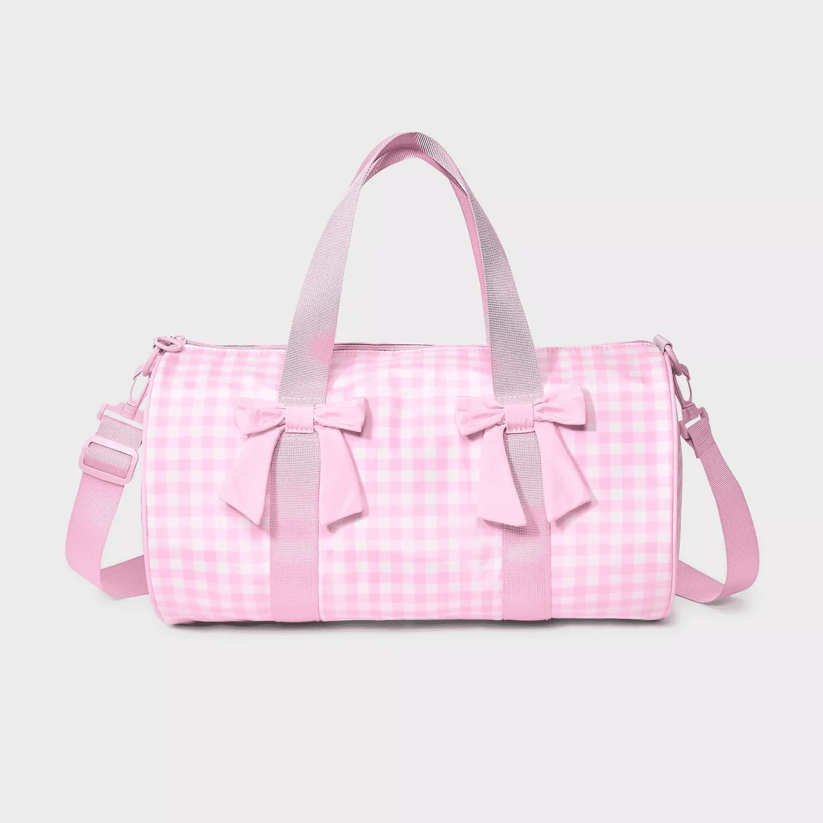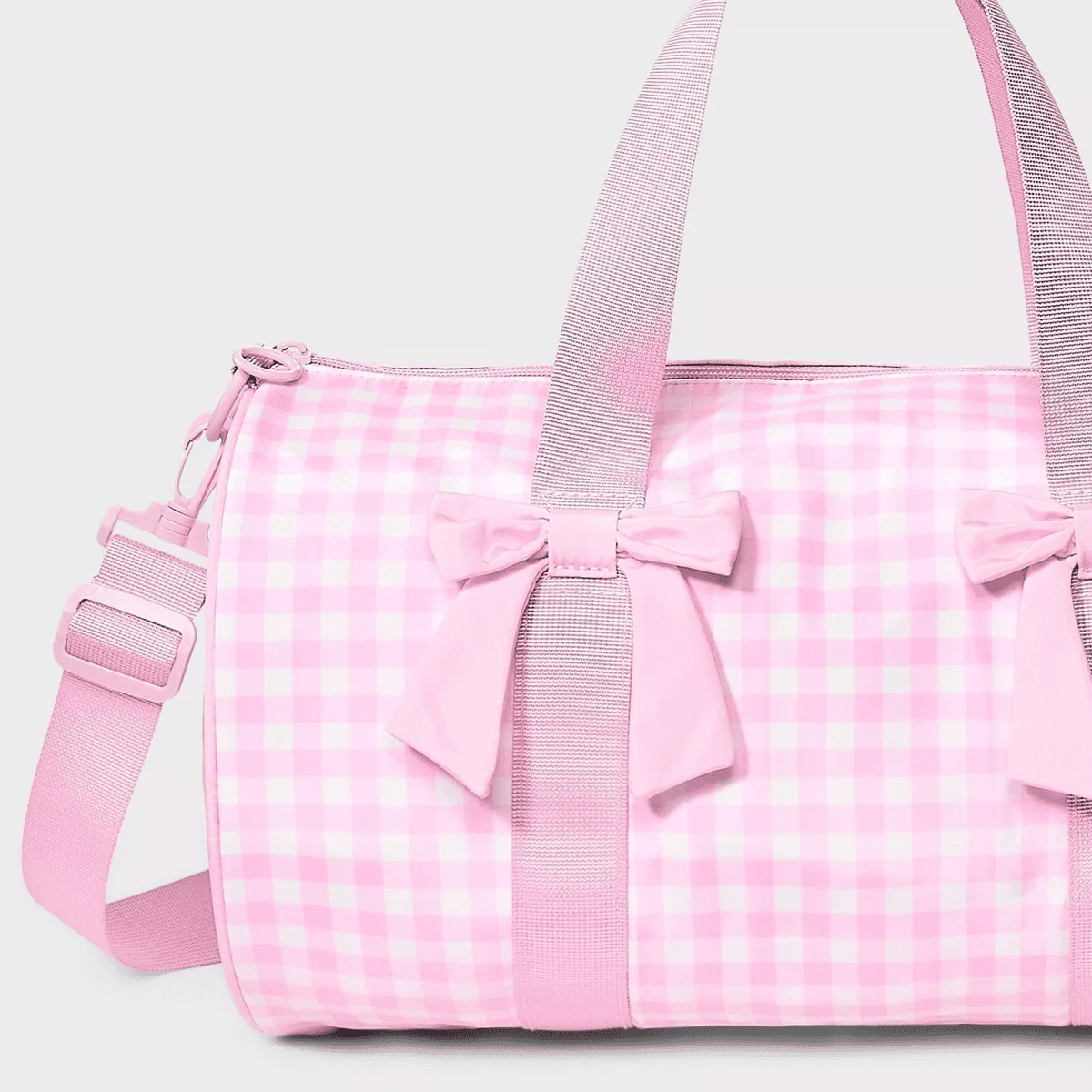 This charming duffel bag from Cat & Jack is perfect for kids on the go. Featuring a delightful pink gingham check pattern, it combines style with practicality. The adjustable strap and double handle offer versatile carrying options, while the zip closure ensures belongings stay secure. With a lightweight design and spacious interior, it’s ideal for carrying essentials. Crafted from durable materials, this bag is a reliable companion for any adventure.