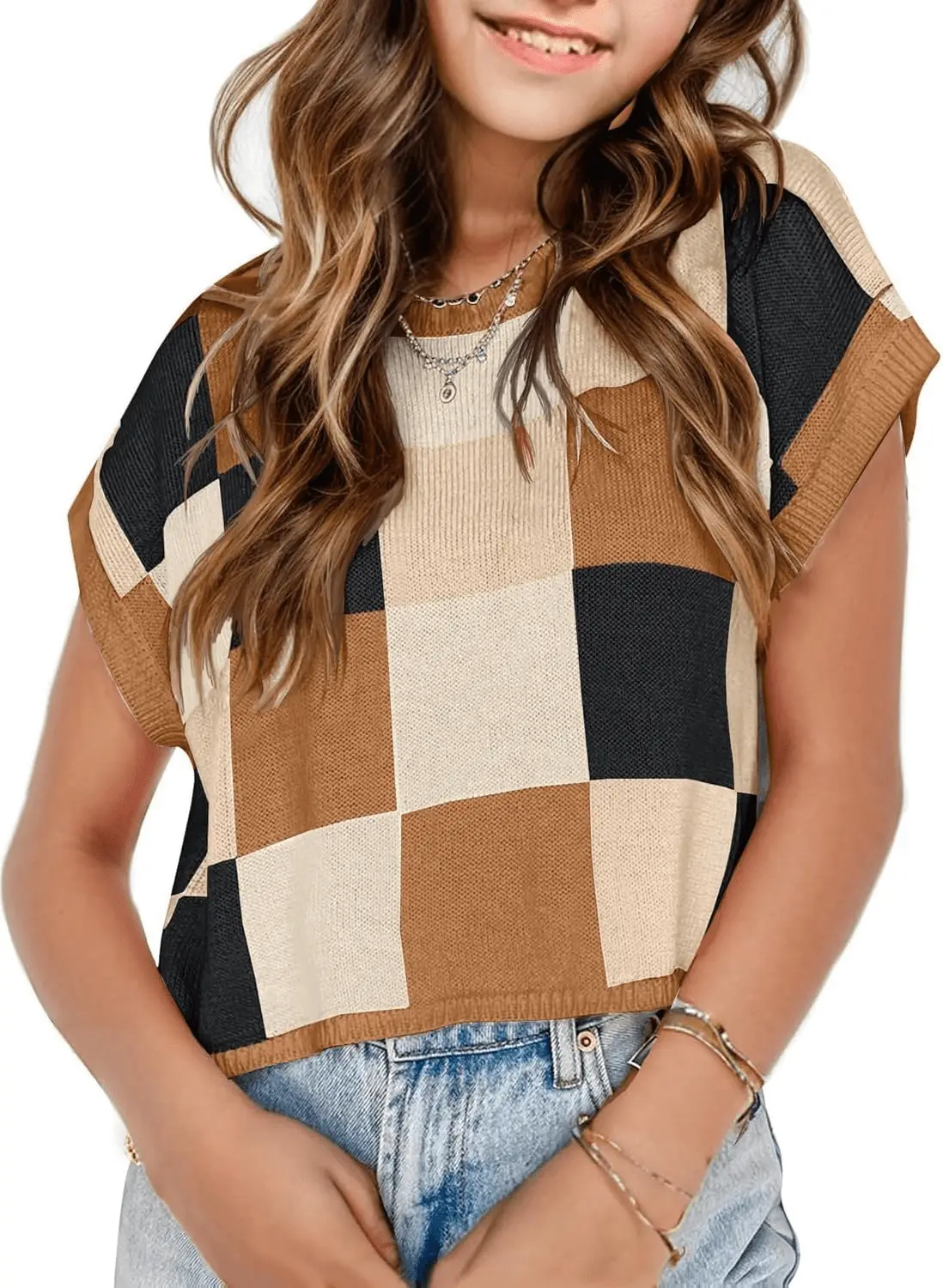 Girls Summer Crop Tops Spring Vest Cute Tanks Cap Sleeve Colorblock Tee Loose Kids Fall Knit Top