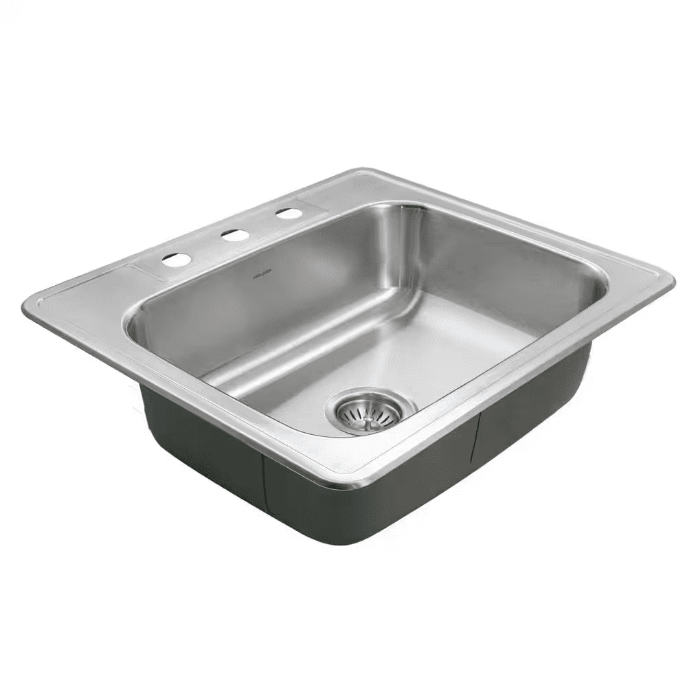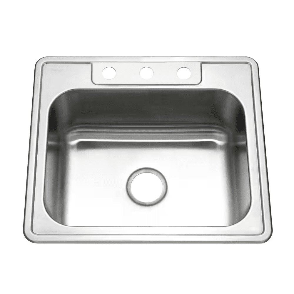 Glowtone 25 In. Stainless Steel Topmount 3-Hole Single Bowl 8 In. Deep Kitchen Sink – 2522-8BS3-1