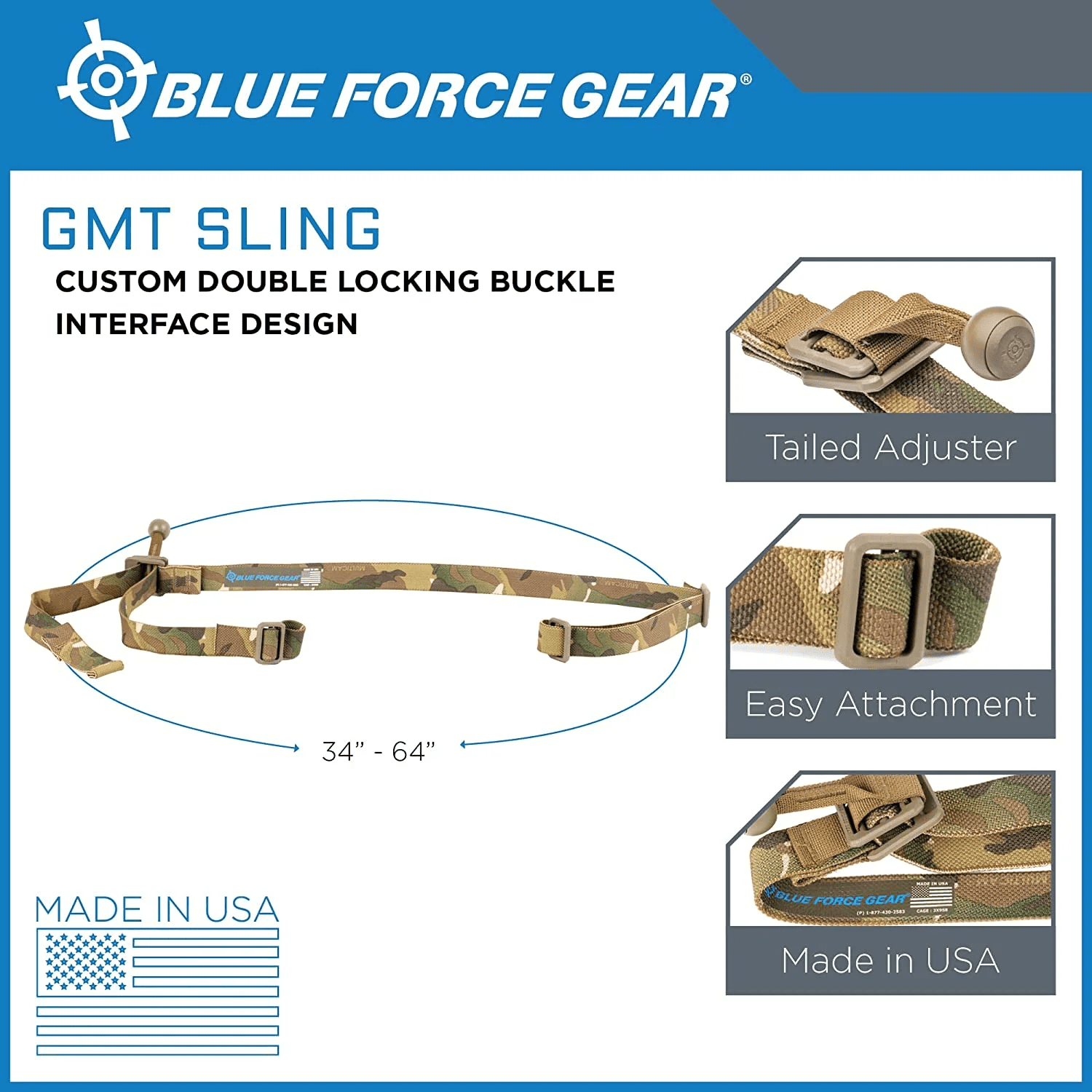 - Always better – The Blue Force Gear GMT sling revolutionized the tailed sling industry, an improvement of previous and legacy models. It provides stability, functionality, efficiency, and safety from hazards. 34 to 64 Inches sling length.