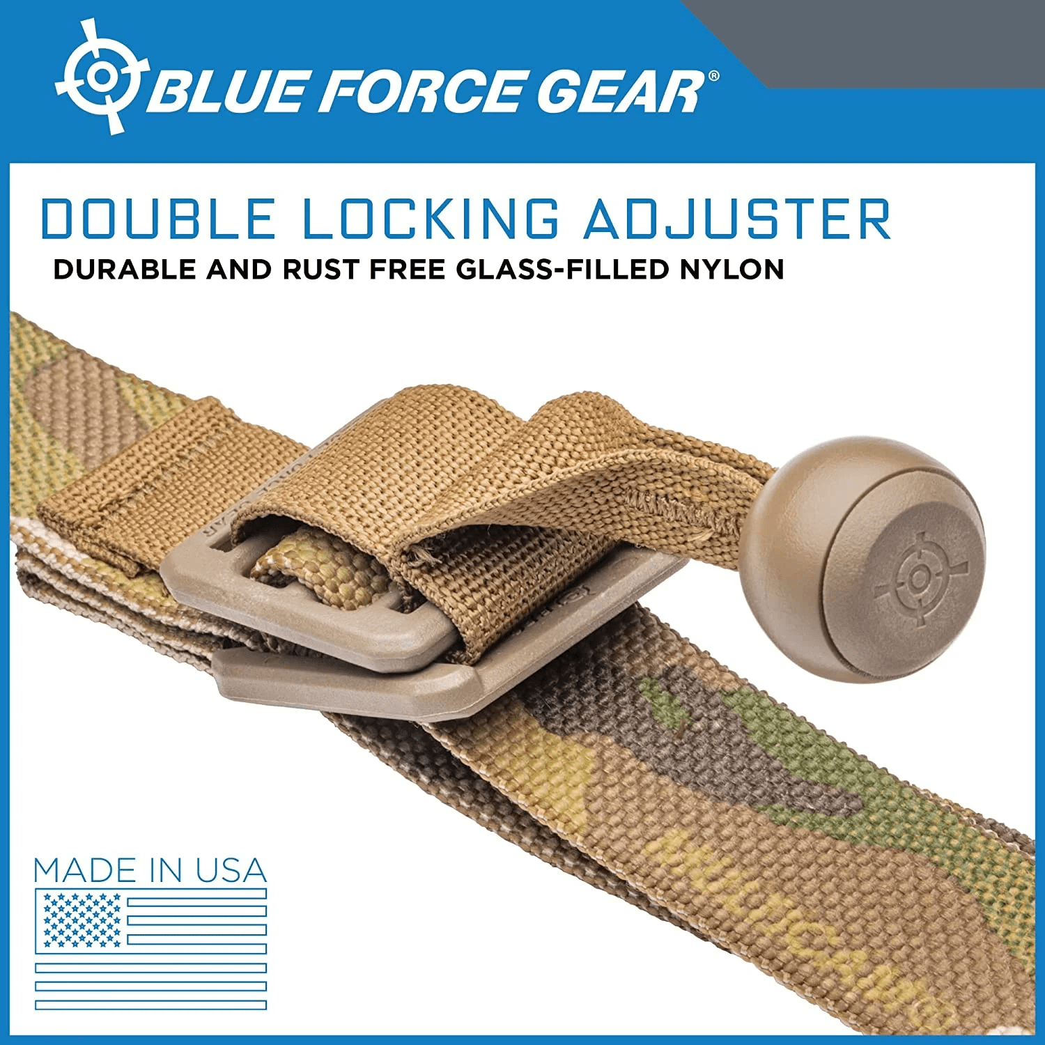 The Blue Force Gear GMT sling revolutionized the tailed sling industry, an improvement of previous and legacy models. It provides stability, functionality, efficiency, and safety from hazards. The GMT sling strap is made from durable and rust-free glass-filled nylon. This sling buckle adjuster provides consistent tension when both tightening and loosening the sling strap. Once set, it doesn’t move until you want it to. After over two years in the design and development phase, this sling buckle adjuster is the heart of the GMT sling. Pull on the tail to tighten, grasp and pull the spherical release knob to loosen. A sewn-in stop at the end of the tail keeps the sling from coming apart. The GMT sling is currently offered in your choice of standard 1.25” webbing width that fits standard hardware options and a 1.00” version designed for lighter gear. Made with high-quality proprietary solution-dyed CORDURA nylon webbing used for the GMT sling that is thicker and softer than traditional tail sling straps. The material is a great choice to avoid snag hazards. Expertly situated at the highest point of your chest, this sling strap delivers constant pressure point relief. Blue Force Gear Products accessories including Buckle and Tail adjuster that exhibit our total commitment to superior design executed in the finest materials. Made in the USA, all of BFG’s products represent a code of advancement, superior materials, and cutting-edge designs and gear that save lives.