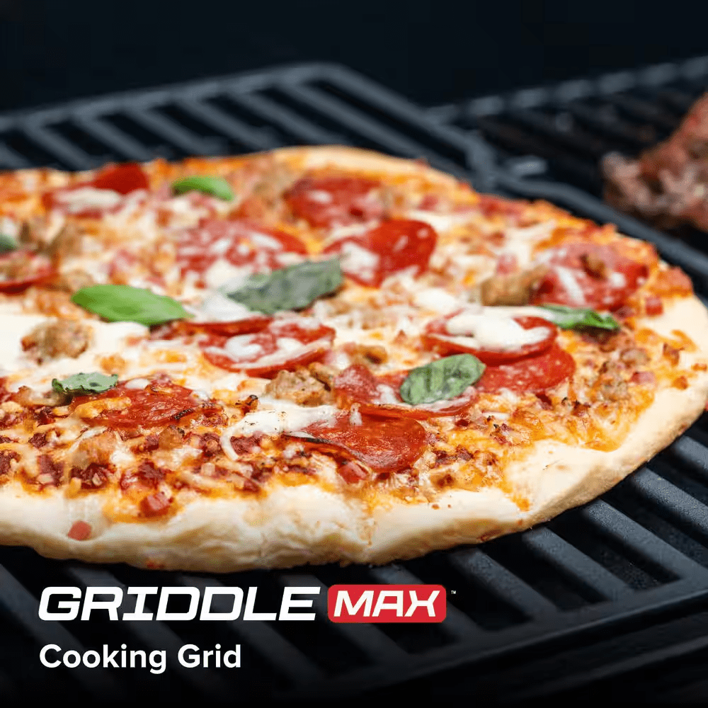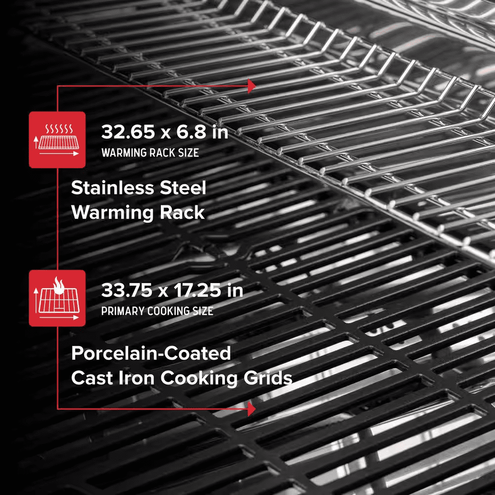 - Durable, easy-to-clean porcelain cast-iron cooking grids