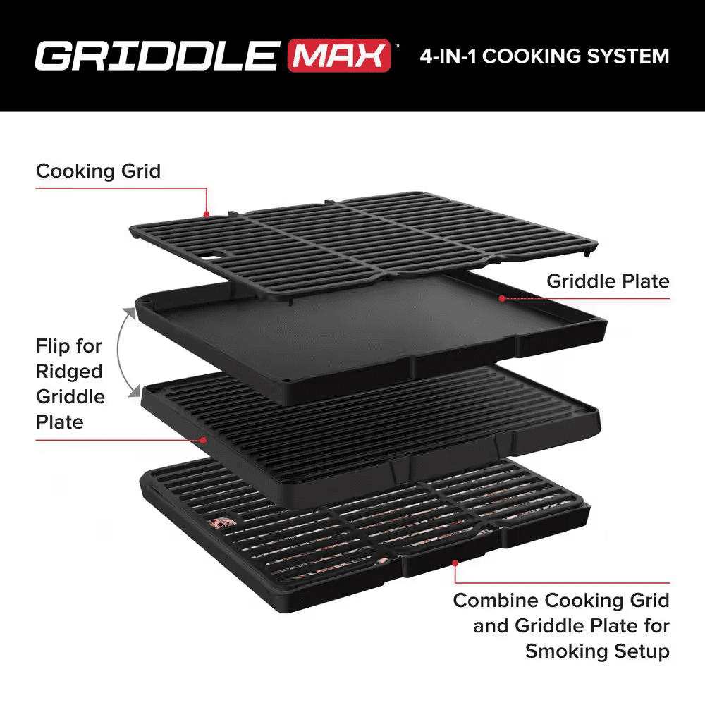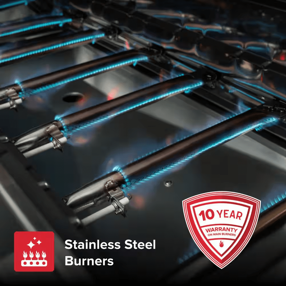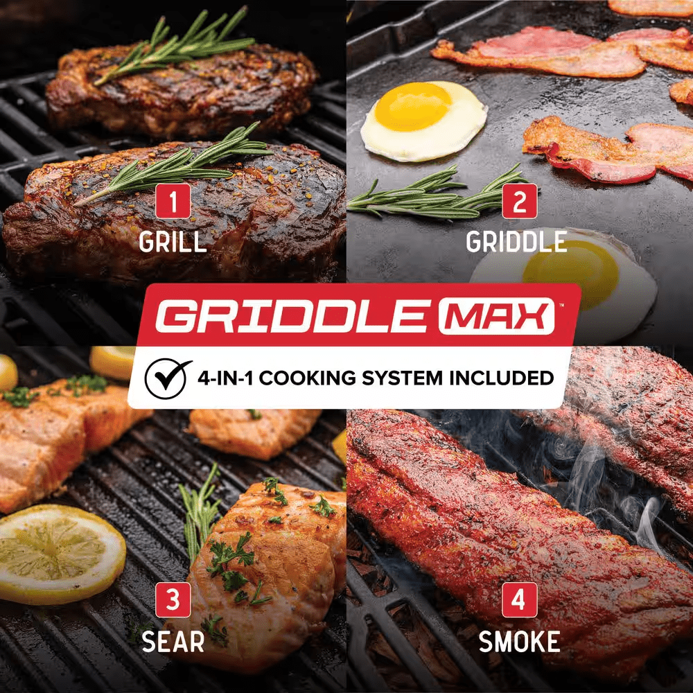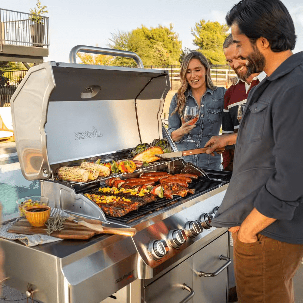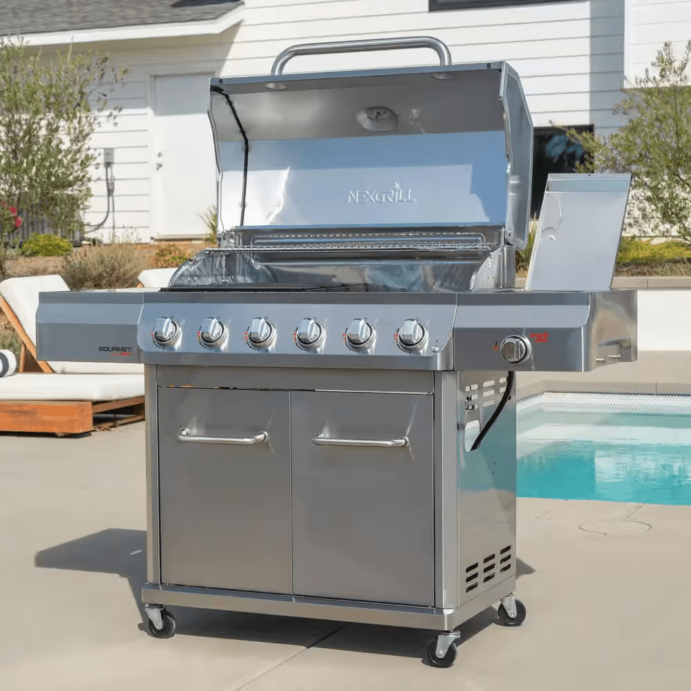Experience grilling like never before with the Nexgrill Gourmet Pro 6-Burner Dual Fuel Gas Grill in Stainless Steel with Searing Side Burner. Offering an expansive 804 sq. in. of total cooking space, this powerhouse features 6 main burners and a searing side burner that deliver a combined 75,000 BTU of flame-roasting energy. The innovative even heat cooking system, complete with stainless steel burners, angled flame tamers, and porcelain-coated cast-iron cooking grids, ensures consistent heat distribution across the entire grilling surface while minimizing flare-superelevated your culinary skills with the Griddle Max Cooking System, which allows you to not only grill but also salute, griddle, and smoke, providing you with the versatility to cook restaurant-style cuisine. The electronic ignition system ensures instant startup, while the upper-level warming rack keeps buns and food perfectly toasty. Designed for both convenience and performance, this grill features casters for easy mobility and a built-in thermometer for precise temperature control. Although initially set up for use with liquid propane, the Gourmet Pro’s dual-energy gas valves make it easy to convert to your home’s natural gas line. Transform your backyard into the ultimate grilling destination with the Nexgrill Gourmet Pro 6-Burner Gas Grill in Stainless Steel with Searing Side Burner, featuring the Griddle Max Cooking System.