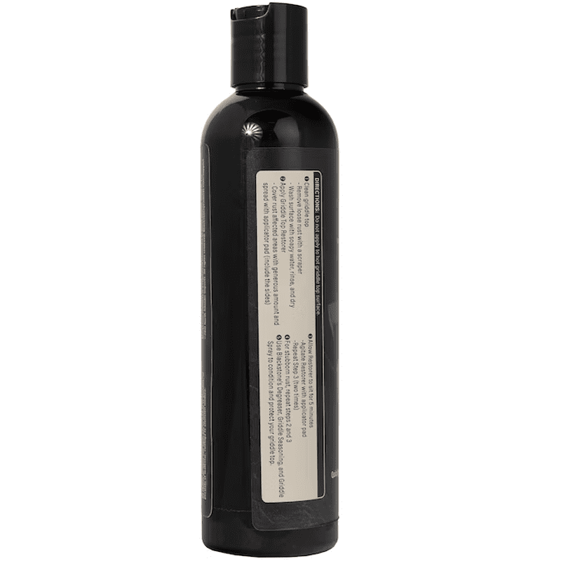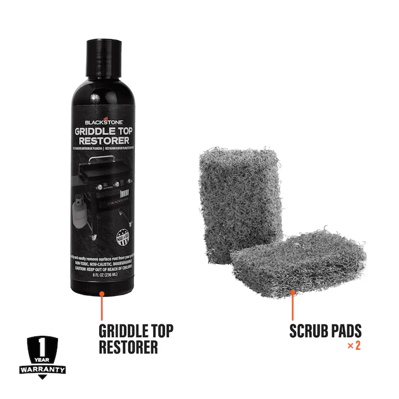- Includes an 8 ounce bottle of griddle restorer and two abrasive applicator pads