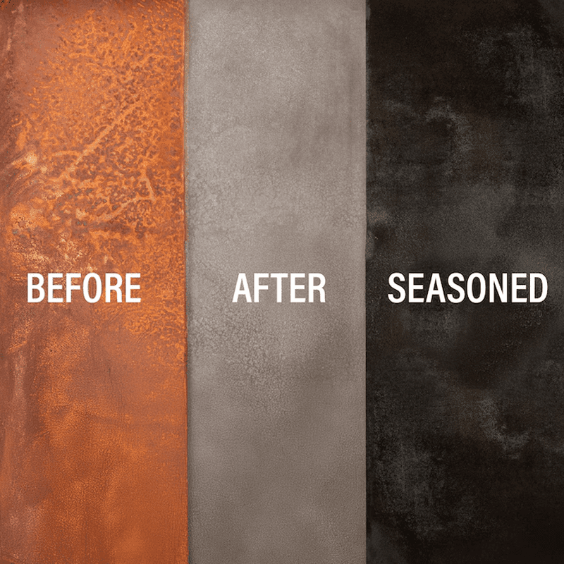 Rust got you down? With Blackstone’s Griddle Top Restoration Kit, removing rust and restoring your griddle top has never been easier. The rust remover starts working immediately to break down the accumulated rust. Within 30-60 minutes, your griddle top is ready to be re-seasoned.