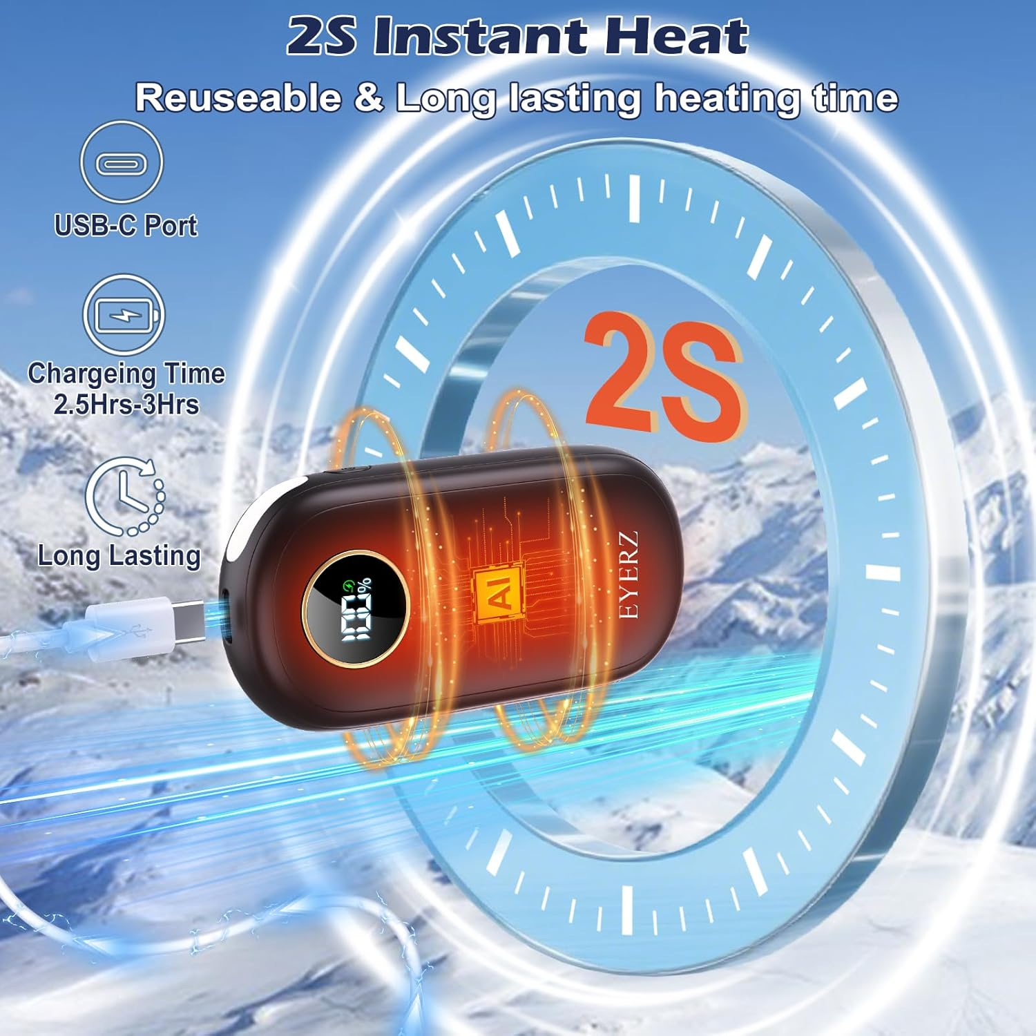 - 【Extended 20-Hour Battery & Fast Charging】Never get caught in the cold with an impressive 20 hours of runtime on single-side mode of electric hand warmers—ideal for all-day adventures like skiing from first chairlift to last run, or exploring Christmas markets from open to close. When it’s time to recharge, a quick 3-hour charge brings you back to full power. The included Y-shaped charging cable lets you charge both rechargeable hand warmer at once from a single USB port.
