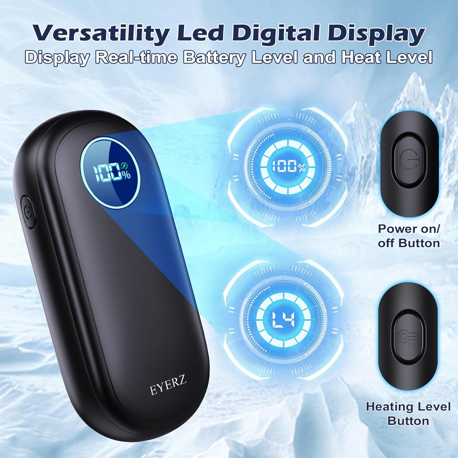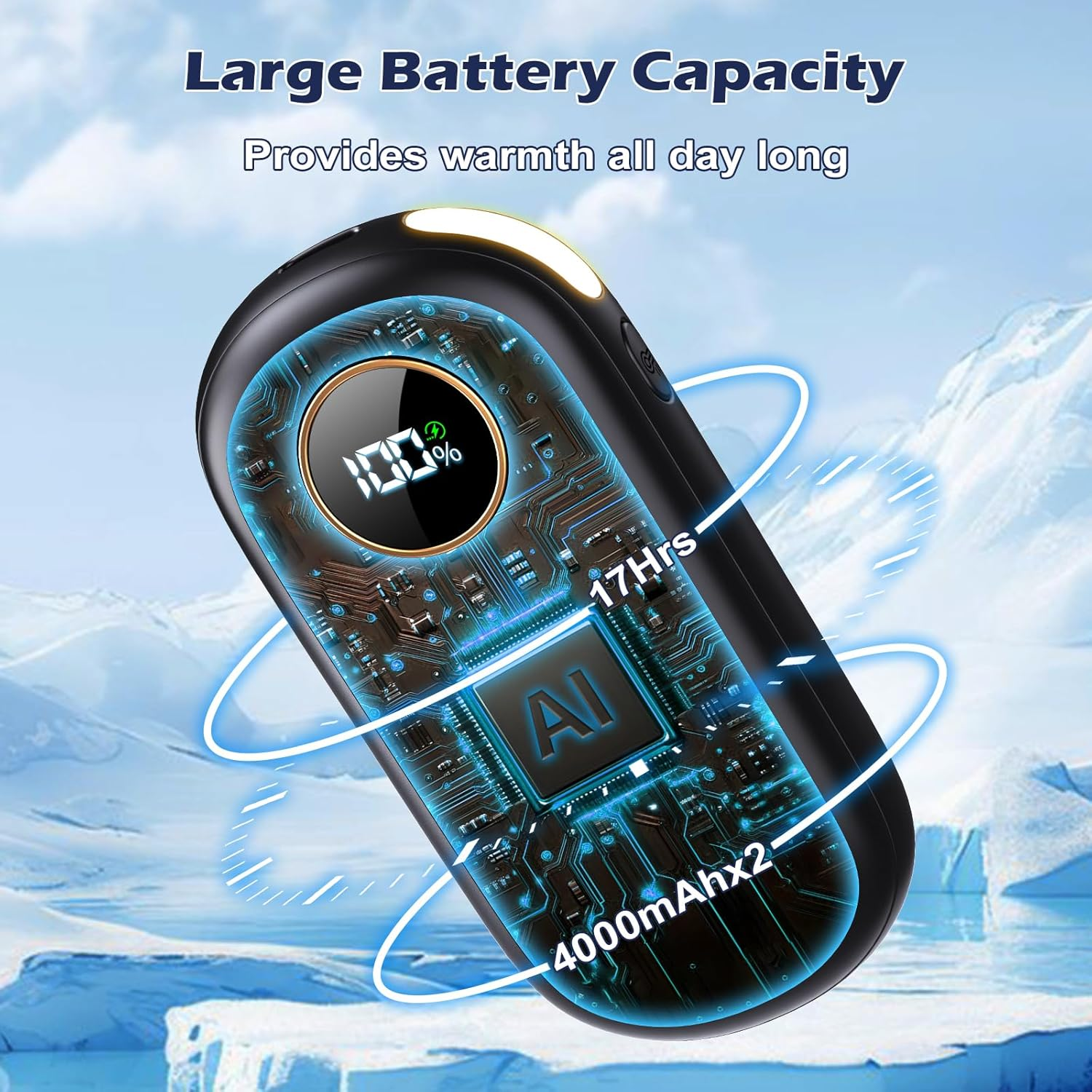 - 【Smart LED Display & Multi-Function LED Light】Stay fully informed with a bright LED screen that shows real-time temperature and battery life. Each electric hand warmers rechargeable also includes a built-in LED flashlight—ideal for lighting your path during an early jog, reading a trail map after dark, or finding your keys in a dim parking lot. It’s the perfect blend of function and comfort for those who need reliable visibility and warmth.