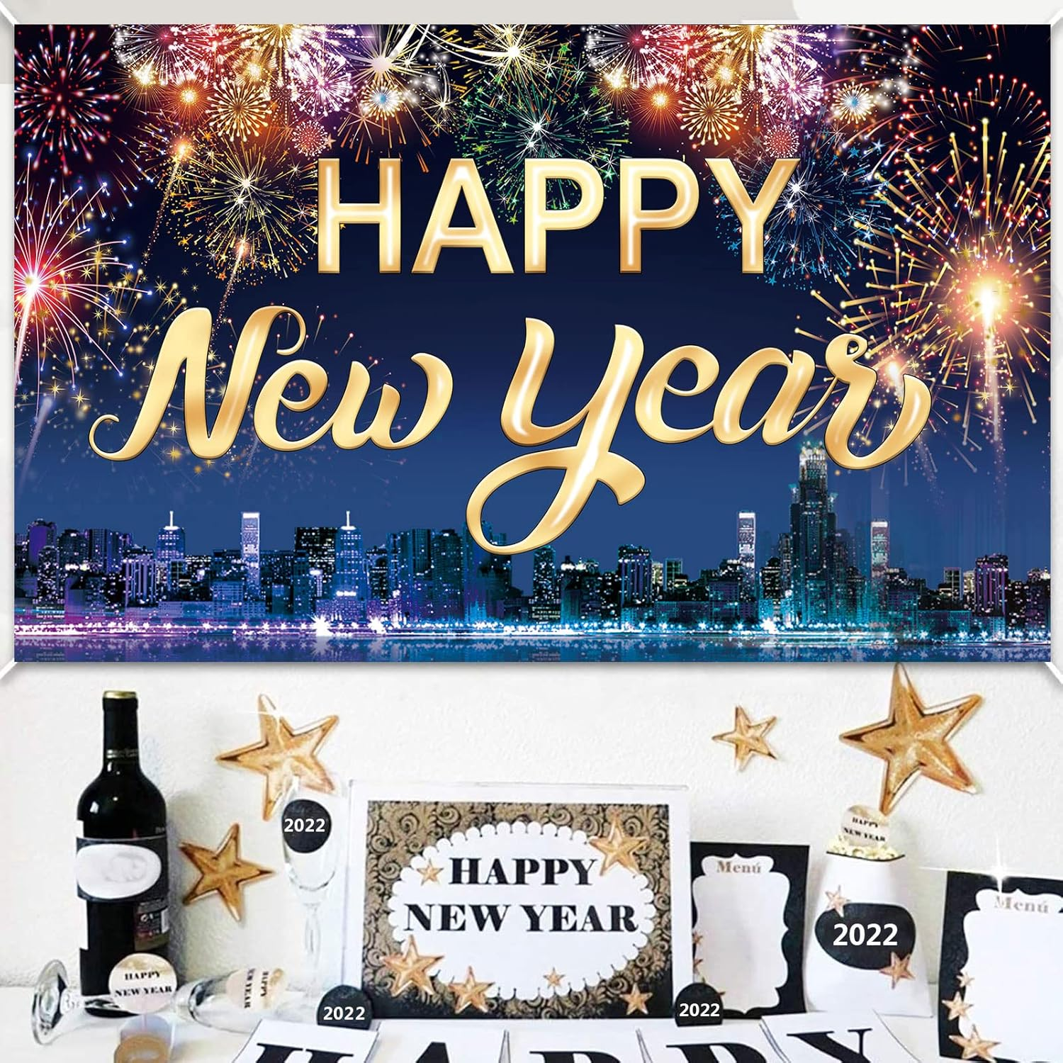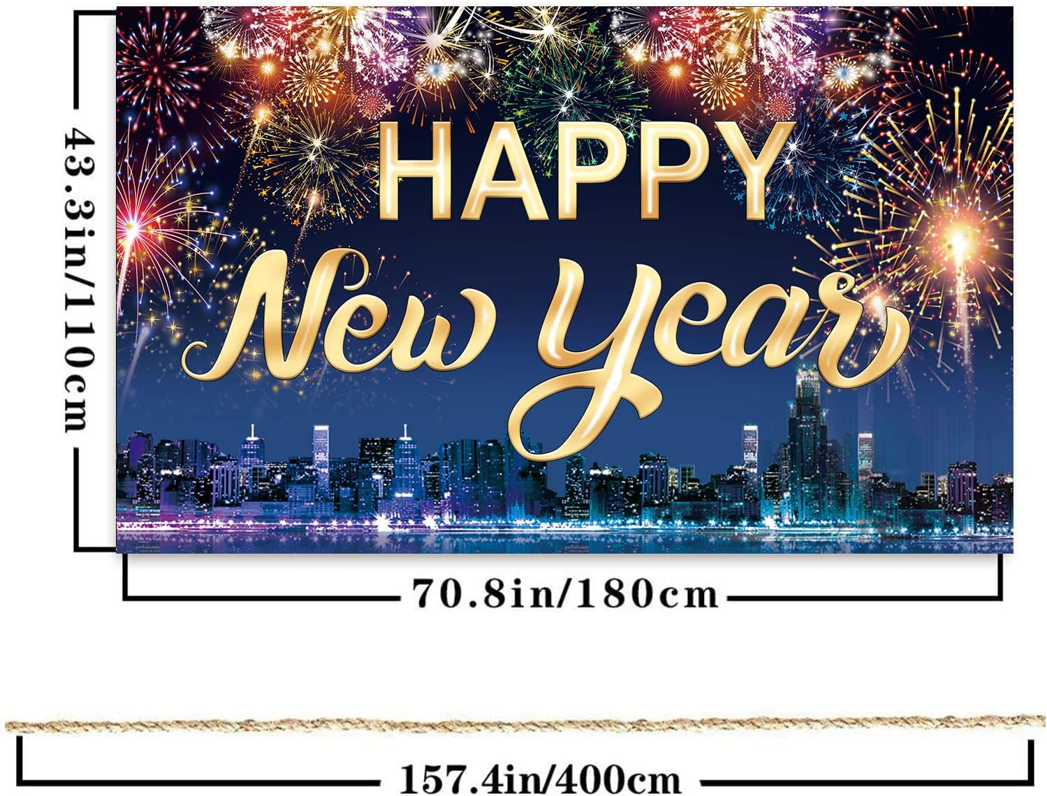 • Size:The HAPPY NEW YEAR Backdrop banner is 70.8 x 43.3 inch, large and enough for your new party decorations.it is also as a photography for your party.