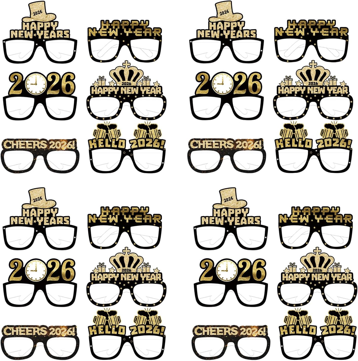 Package: 24 PCS New Year glasses photo props