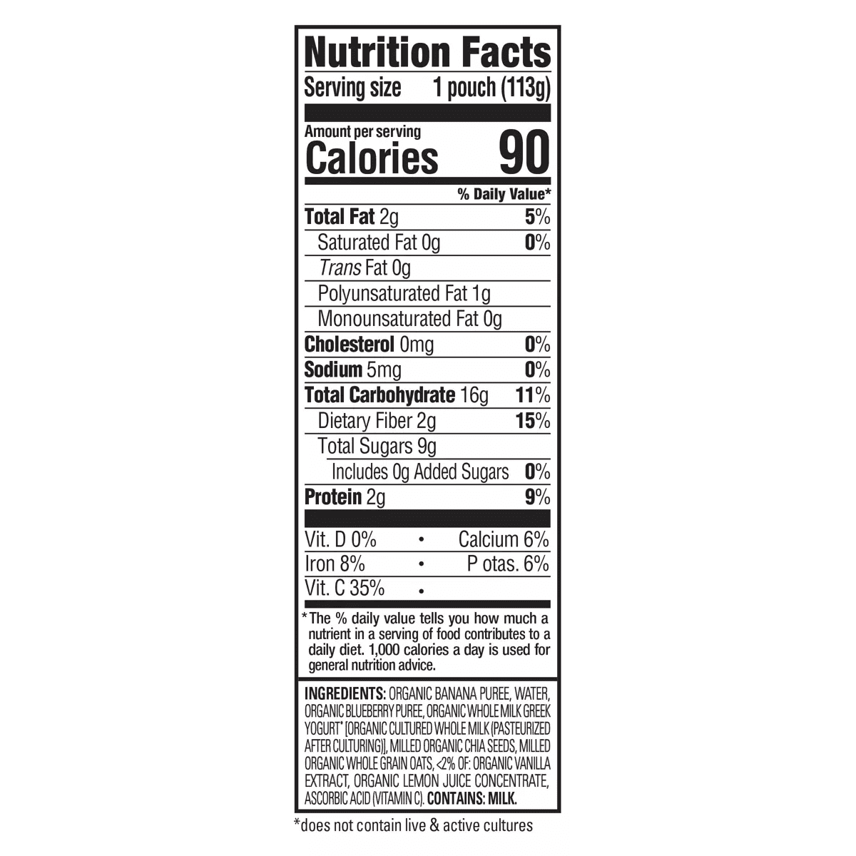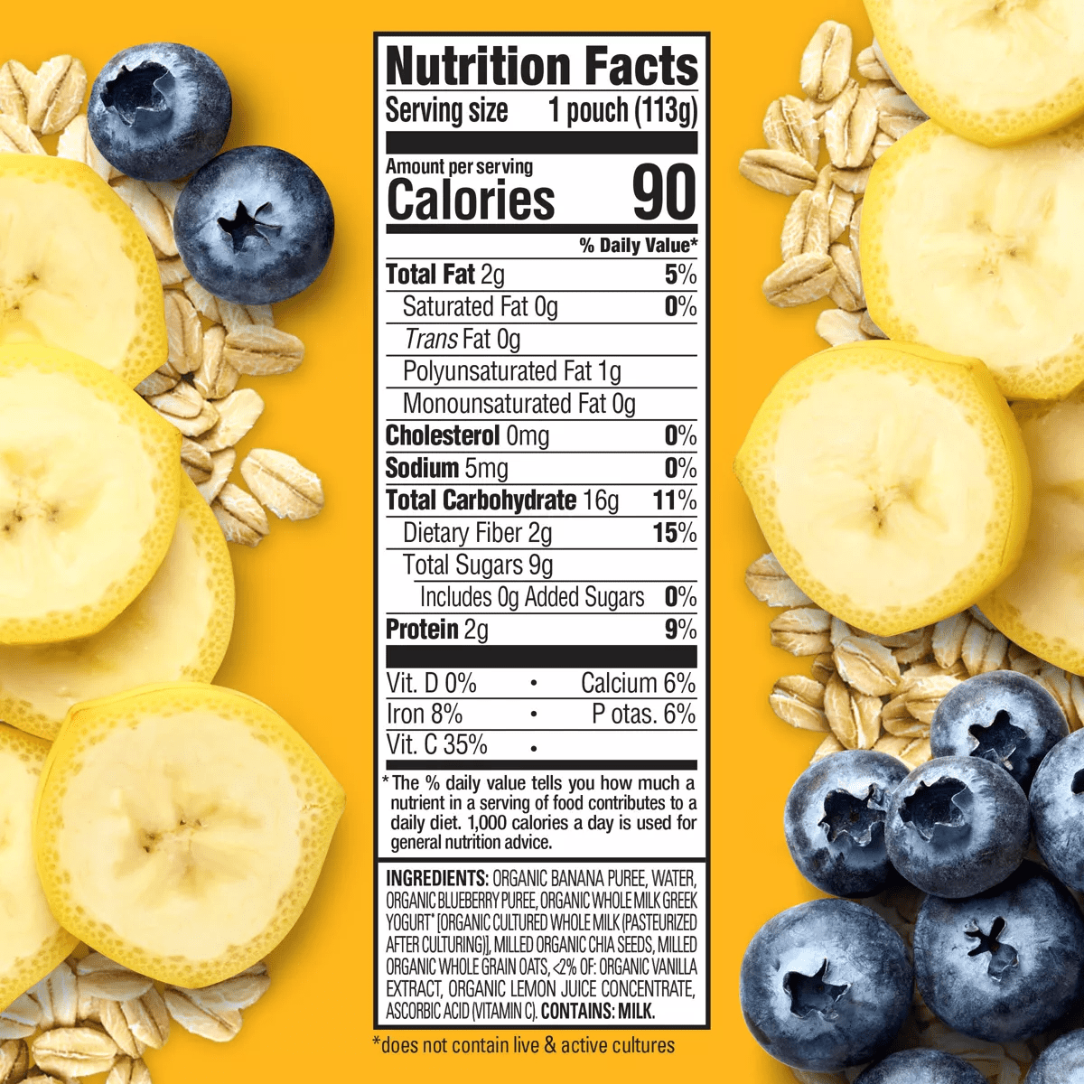 Happytot Super Morning Organic Bananas Blueberries Yogurt & Oats with Super Chia Baby Food Pouch – 4Oz