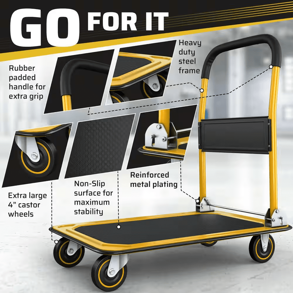 - 🚚 Fold flat in seconds with our space-saving platform dolly.