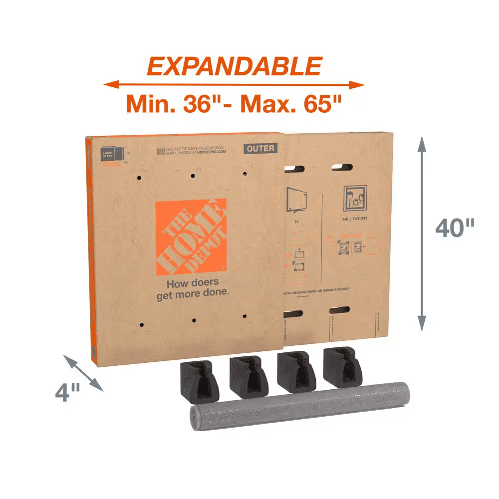The TV Box is adjustable to fit many different flat screen TV’s, mirror, art or pictures. Includes locking handles for easy carrying as well as sturdy handling while transporting. It is also perfect for moving or storing items.