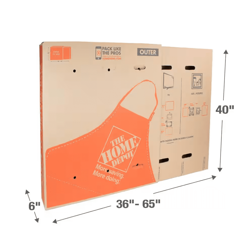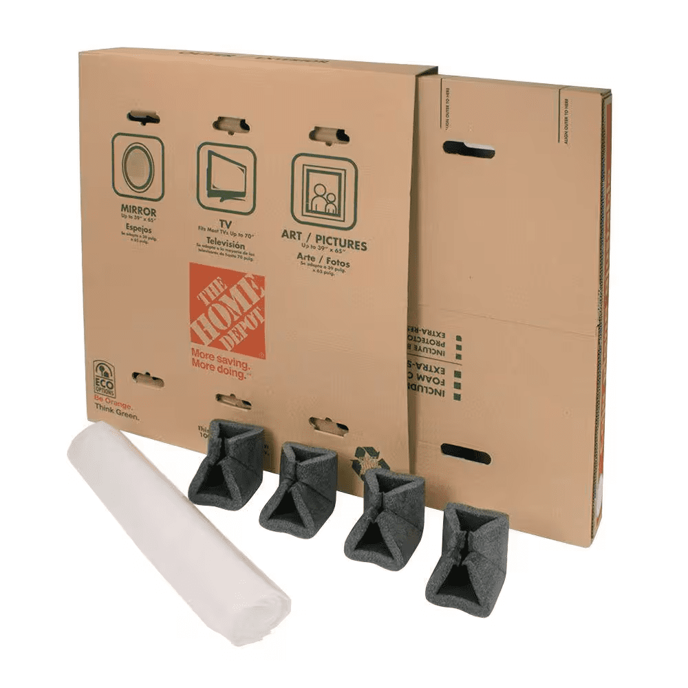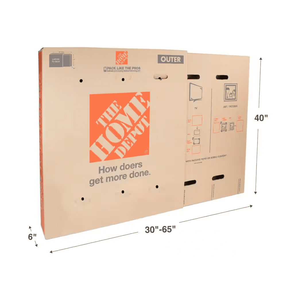 - Flat screen TV moving boxes fit up to 40 in. and 70 in. TVs
