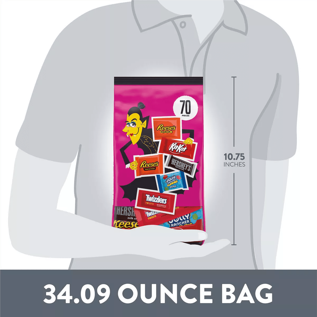 - Contains one (1) 34.09-ounce, 70-piece bulk variety bag of Hershey Assorted Flavored Candy