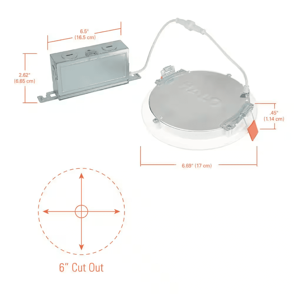 HALO 6 in. can less LED light, boasting selectable 5 CCT options for customizable ambiance. Impressive 900 Lumens output, this energy efficient fixture delivers both style and functionality. At just 12.50-Watt, it’s brilliant choice for modern lighting solutions.
