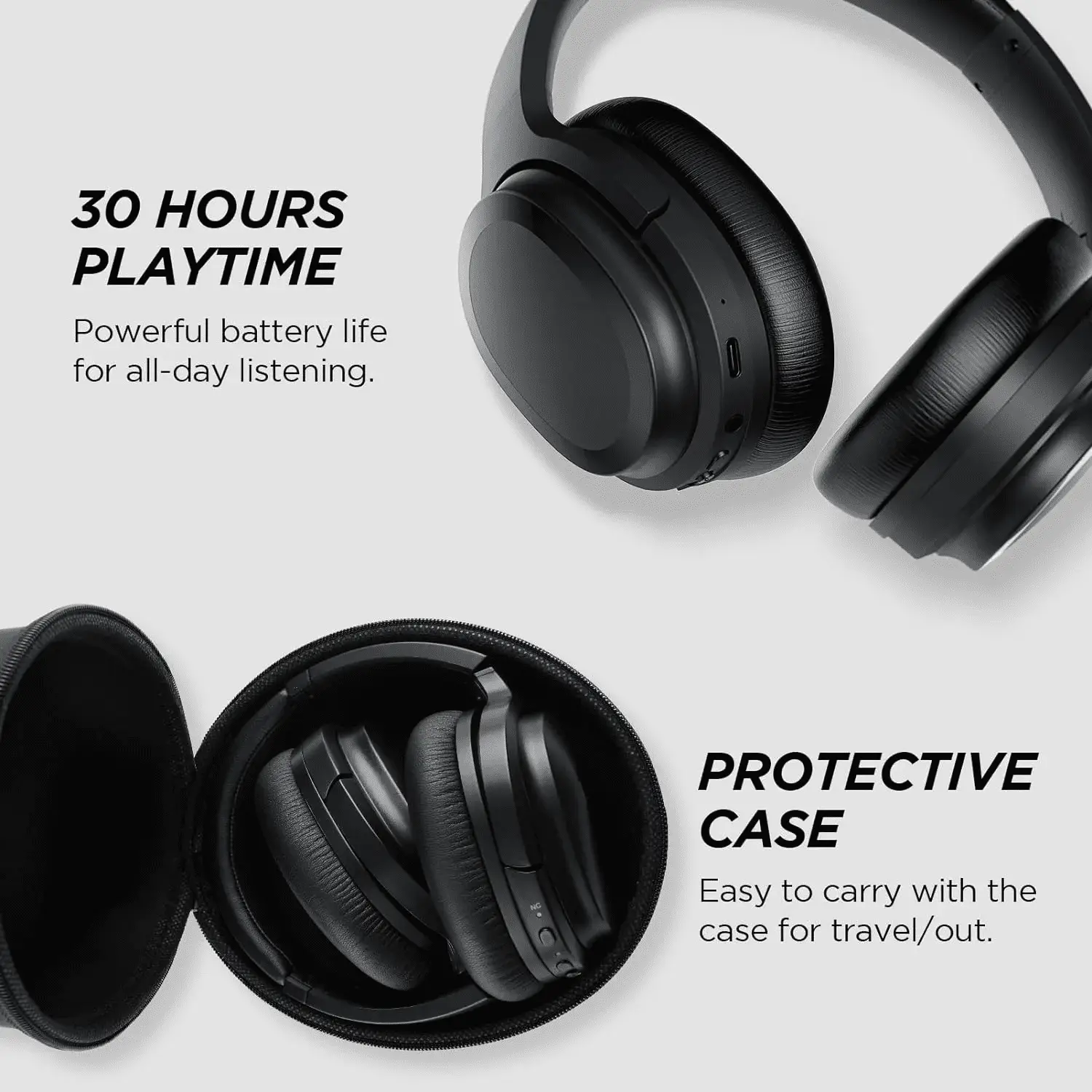 - Long-lasting Playback Time: Never pause with up to 30 hours of playtime, up to 30 total hours in Bluetooth mode, or up to 25 total hours in ANC mode. There’s no more battery anxiety with SE7 active noise cancelling headphones.