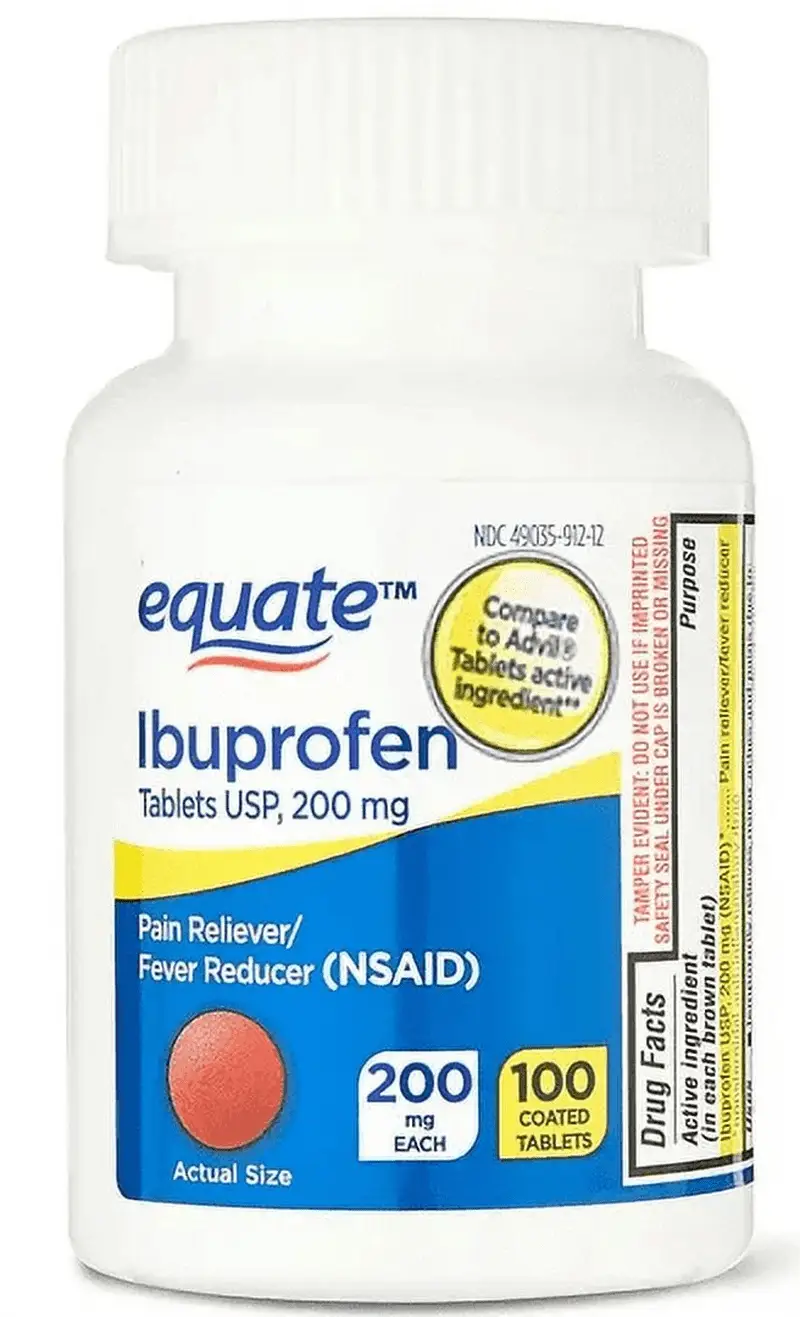 When body aches and pains get you down, Equate Ibuprofen Tablets can provide the immediate relief you need to get back to your day. Ibuprofen is ideal for treating minor discomforts due to headaches, muscle pains, toothache, menstrual cramps and more. It also works as an effective fever-reducer. Just one tablet can relieve pain all day. Equate Pain Relief is comparable to Advil. One bottle contains 100 pieces, each with 200mg Ibuprofen. This product is intended for use by adults and children 12 years of age and older.