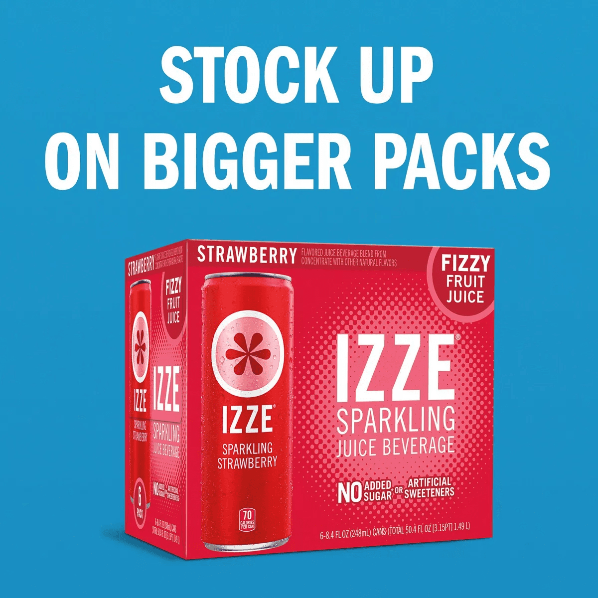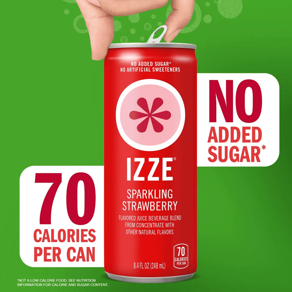 IZZE Strawberry Sparkling Juice beverage blend is sweet, juicy, bubbly and fizzing awesome! Full of bold flavors and with just the right amount of bubbles, drinking an IZZE is like having a party on your tongue. IZZE combines 60% real fruit juice* with a splash of bubbly H2O. At any time of day, celebrate and elevate your beverage experience with flavors ranging from peach to mango, pomegranate to apple and more. Ideal for get-togethers with family and friends, the fusion of real fruit flavors and sparkling water creates an irresistibly bold taste that sets IZZE apart. Another plus – it’s non-GMO, has no added sugar** and no artificial sweeteners. Packed with powerfully fruity taste, each 8.4 FL OZ can has 70 calories.