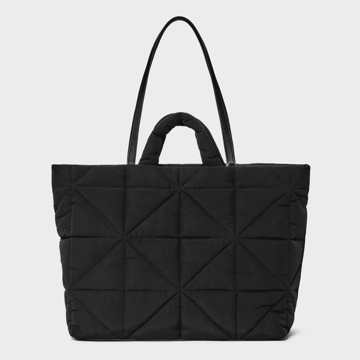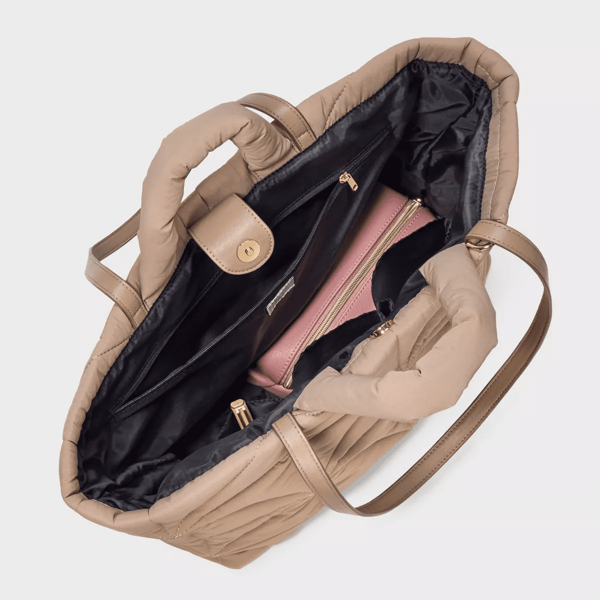 This Kate Tote Handbag from A New Dayâ„¢ in a solid color showcases an unstructured silhouette with a geometric quilted finish for a chic, textured look and it goes well with any of your outfits. The interior accessories pocket, zip pocket and exterior side pockets help keep your belongings organized. Designed with a magnetic closure, this stylish tote handbag is easy to carry with double shoulder and grab handles.