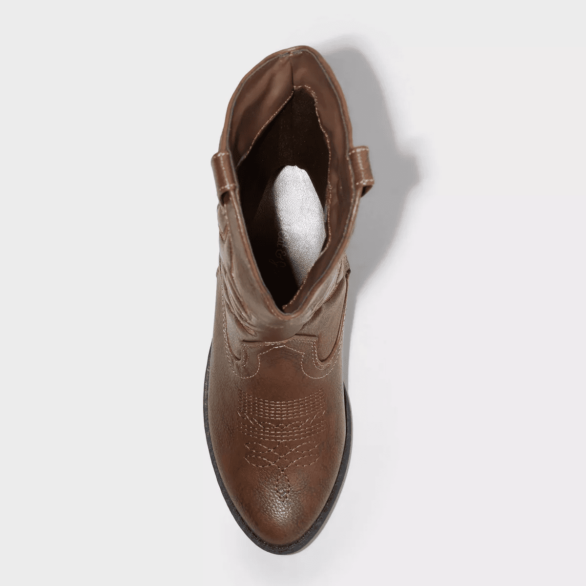 Update your child’s shoe collection with these Memphis Western Boots from Cat & Jack™. These mid-calf boots boast a faux-leather upper, almond closed toe, and soft insole and lining. Set on a 1.25-inch western heel, the solid-color boots are elevated by a curved topline, stylish pull loops and ornate stitching on the vamp and shaft. A side zipper completes the look and lends a snug fit with easy on and off.