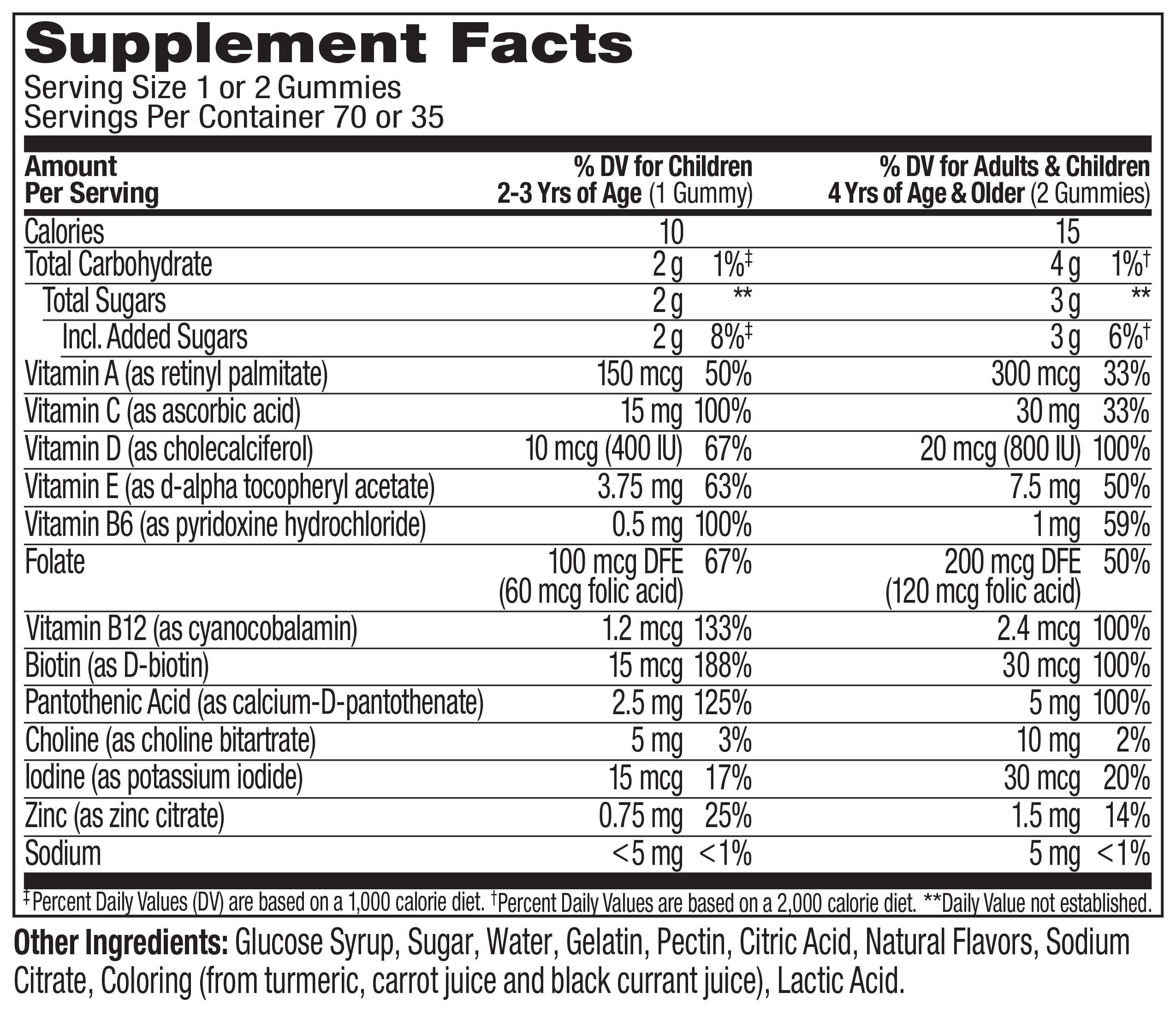 - Sour Fruity Punch flavored with other natural flavors, a peppy punch of orange and strawberry flavors. 70 gummies per bottle for a 70 or 35 day supply