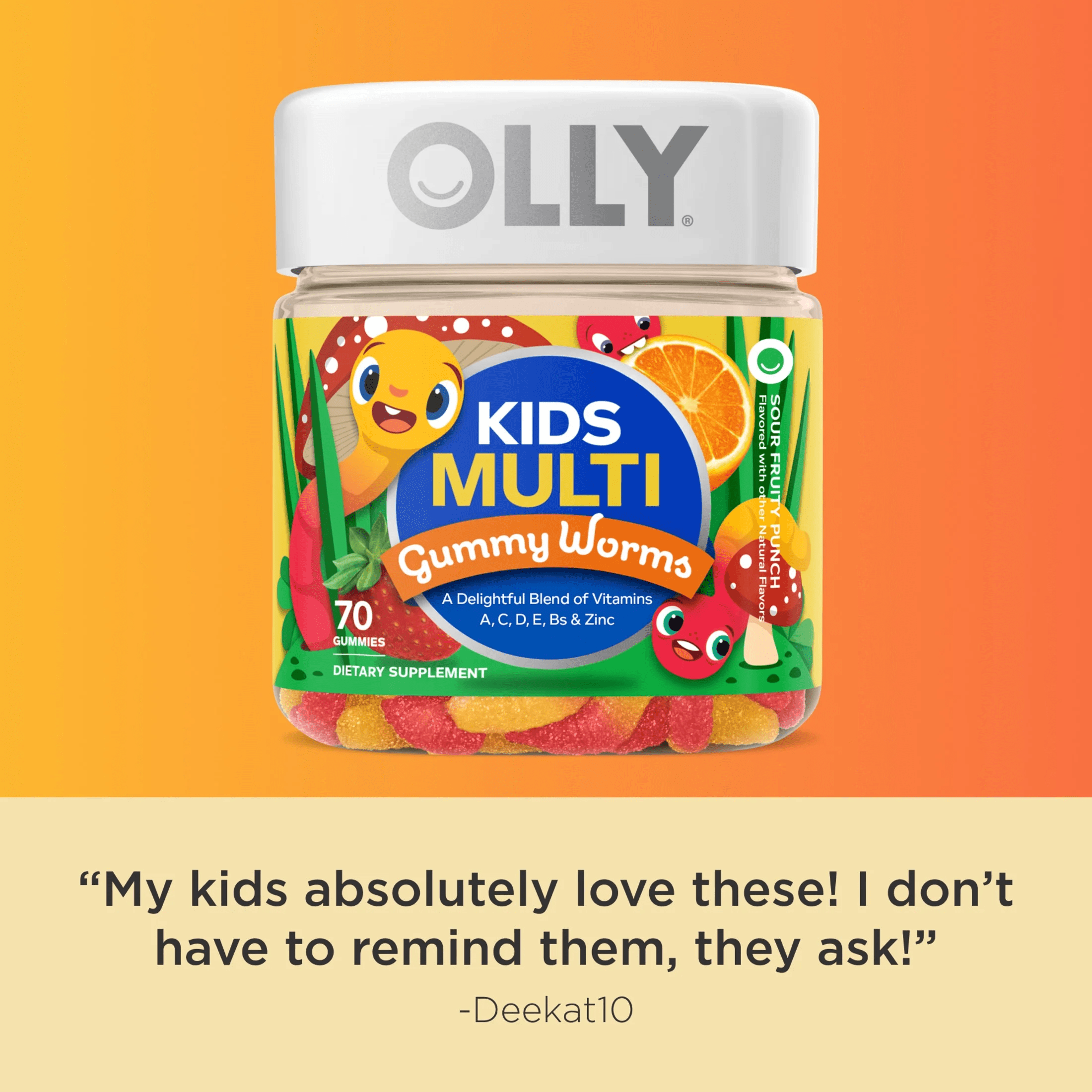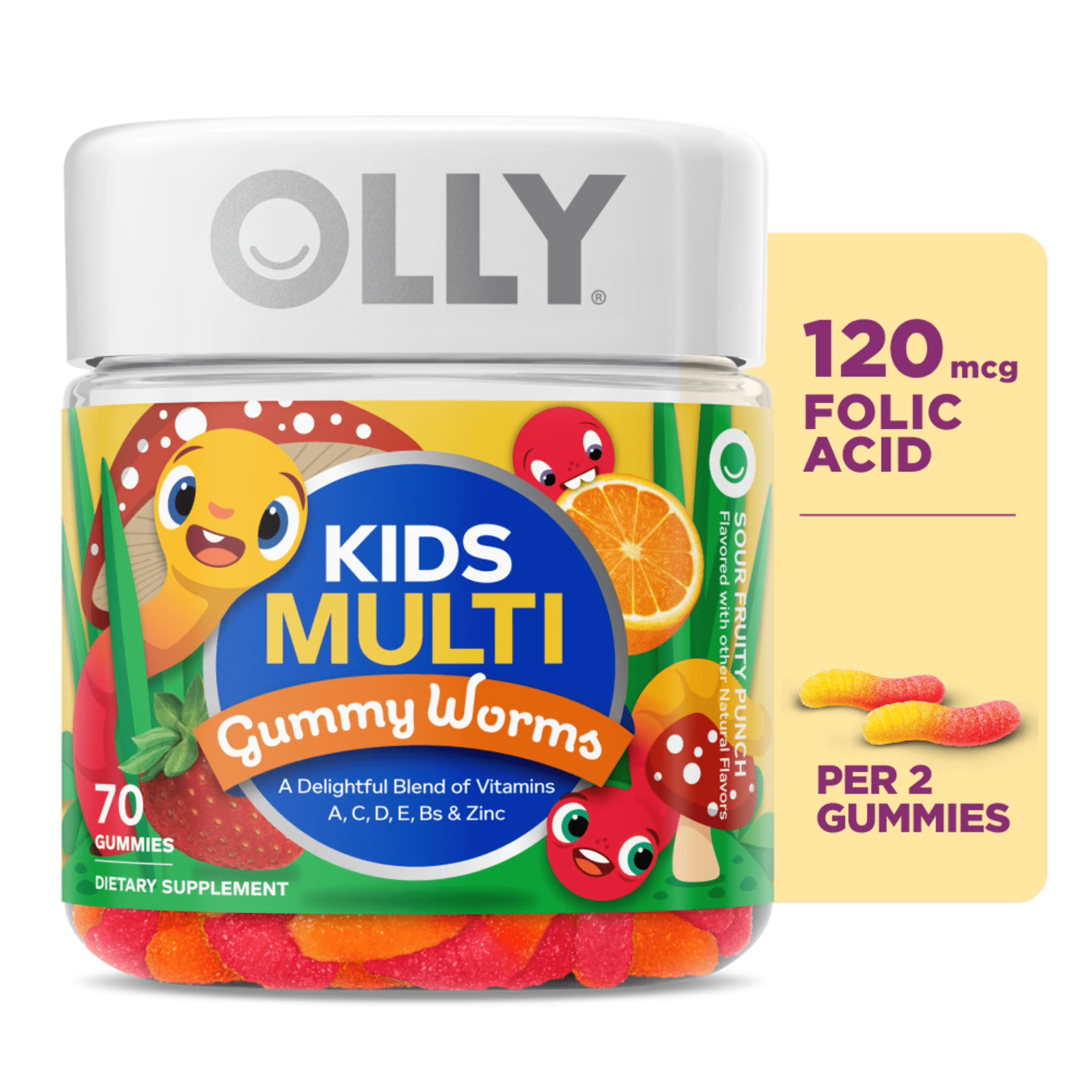 - OLLY Kids Multivitamin Gummy Worm Supplement, Vitamins A, C, D & Zinc, 70 Count: